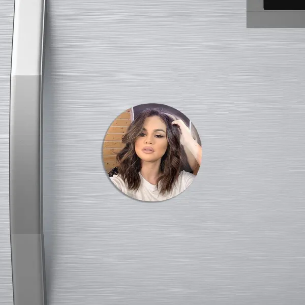 مگنت سلنا گومز Selena Gomez خندالو با روکش سلفون مات مخملی ضدخش و قطعه پشتی فلزی تولید شده است که آهنربای اتمی بکار برده شده در محصول، بصورت مخفی تعبیه شده ودیده نمی شود. ضمن اینکه گیرایی بسیار بالایی داشته و به هیچ عنوان از روی یخچال نمی افتد.