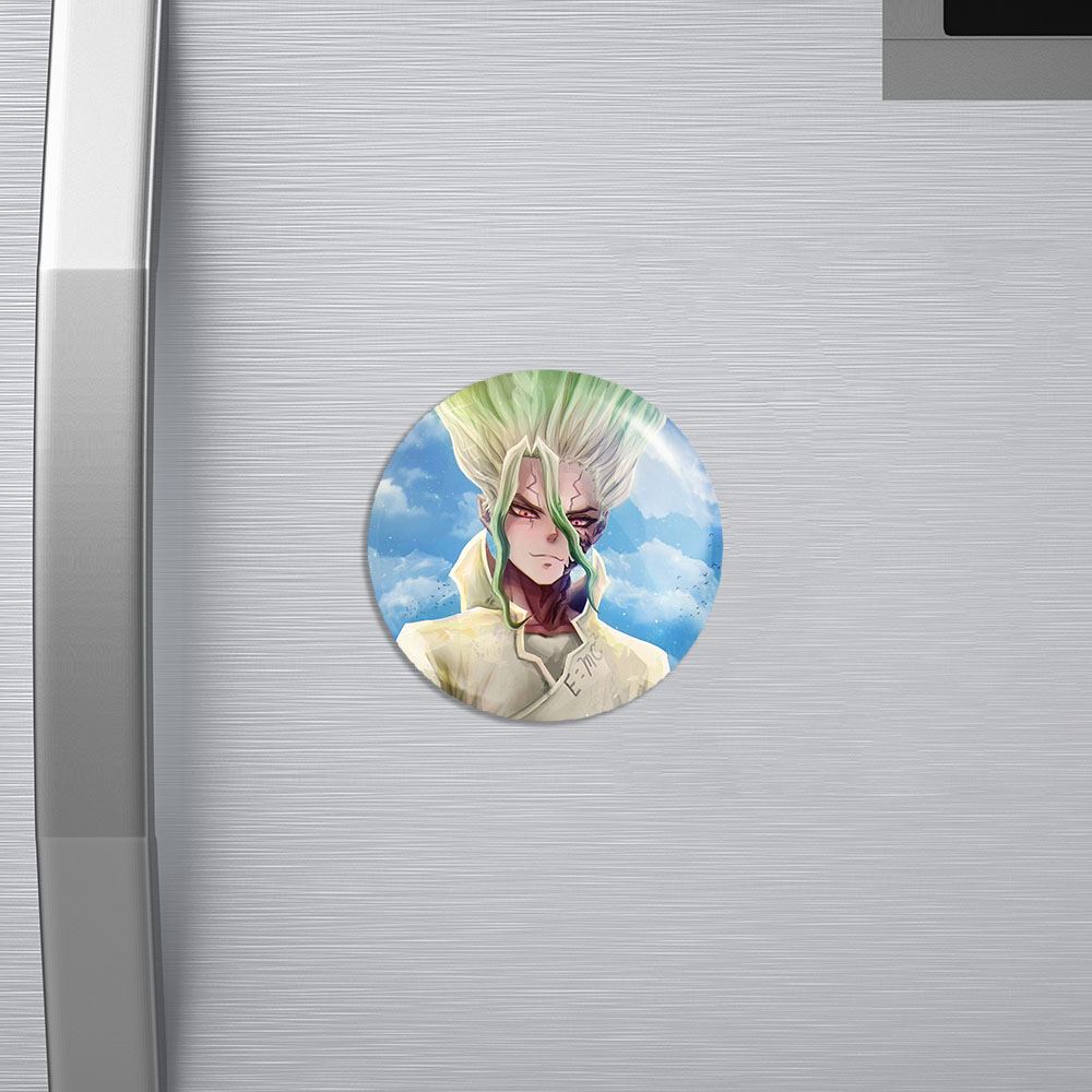 مگنت سنکو انیمه دکتر استون Dr. Stone خندالو با روکش سلفون مات مخملی ضدخش و قطعه پشتی فلزی تولید شده است که آهنربای اتمی بکار برده شده در محصول، بصورت مخفی تعبیه شده ودیده نمی شود. ضمن اینکه گیرایی بسیار بالایی داشته و به هیچ عنوان از روی یخچال نمی افتد. نکته مهم این است که به دلیل مخفی بودن آهنربا، هیچگونه خط و خش و زدگی بر روی یخچال ایجاد نخواهد شد. چاپ مگنت یخچال سنکو انیمه دکتر استون Dr. Stone نیز با دستگاه های استاندارد و با بهترین سطح کیفیت صورت گرفته و طرح با شفافیتی مثال زدنی و با سلفون چسبی تولید شده است که باعث شده محصول نهایی بدون شکست نور دیده شود. همچنین بسته بندی جذاب و مینیمال مگنت های یخچالی، آنها را مناسب هدیه کرده است. مگنت سنکو انیمه دکتر استون Dr. Stone خندالو علاوه بر روی یخچال بر هر سطح فلزی دیگری مثل لولای در اتاق، کمد های آهنی و … نیز قابل نصب است.