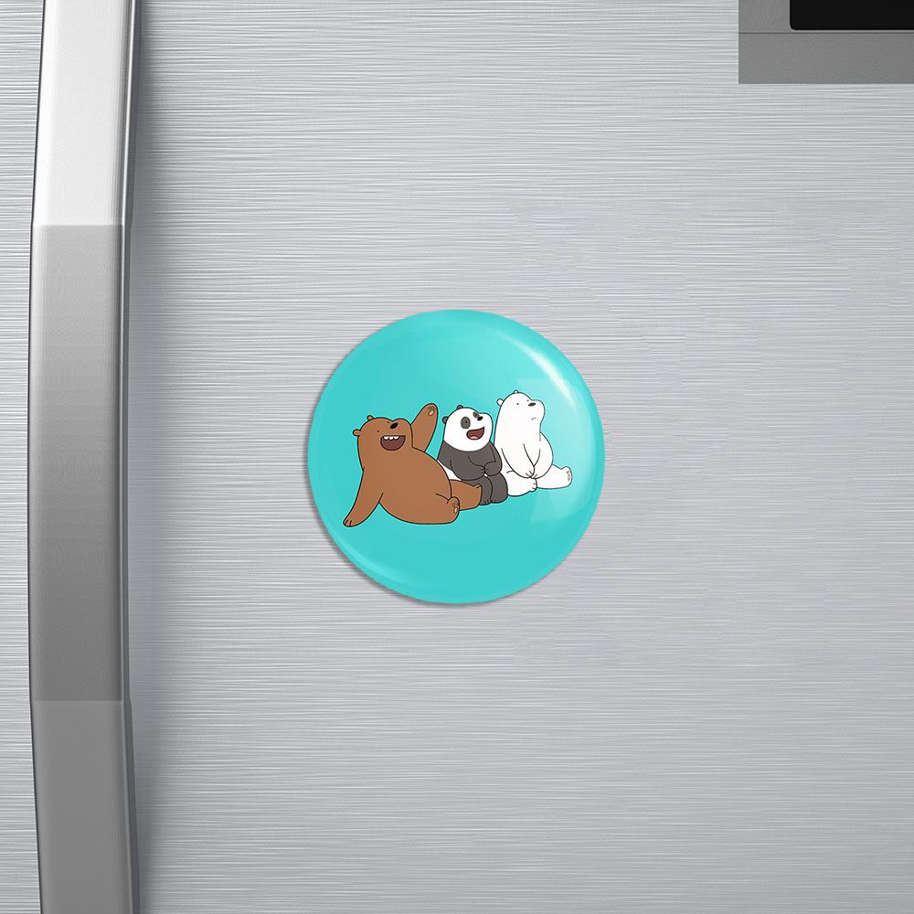مگنت سه خرس کله پوک خندالو با روکش سلفون مات مخملی ضدخش و قطعه پشتی فلزی تولید شده است که آهنربای اتمی بکار برده شده در محصول، بصورت مخفی تعبیه شده ودیده نمی شود. ضمن اینکه گیرایی بسیار بالایی داشته و به هیچ عنوان از روی یخچال نمی افتد.