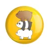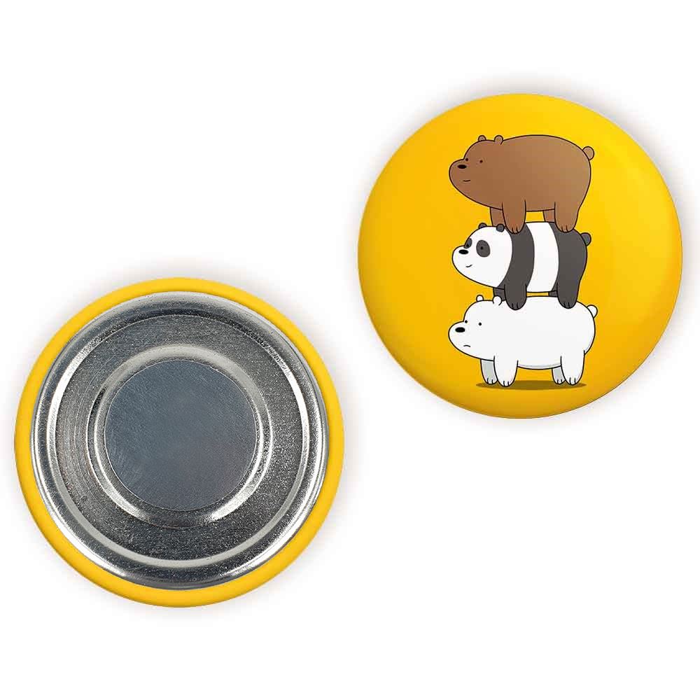 مگنت سه خرس کله پوک خندالو با روکش سلفون مات مخملی ضدخش و قطعه پشتی فلزی تولید شده است که آهنربای اتمی بکار برده شده در محصول، بصورت مخفی تعبیه شده ودیده نمی شود. ضمن اینکه گیرایی بسیار بالایی داشته و به هیچ عنوان از روی یخچال نمی افتد.