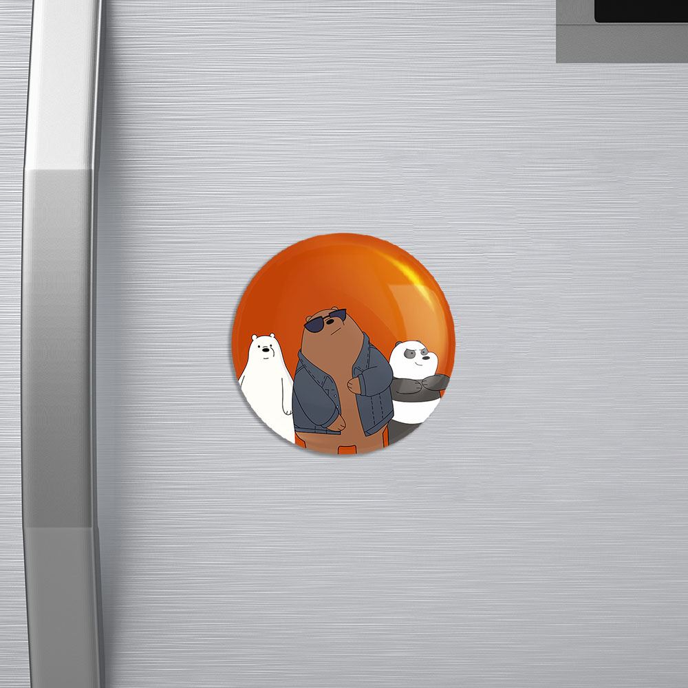 مگنت سه خرس کله پوک خندالو با روکش سلفون مات مخملی ضدخش و قطعه پشتی فلزی تولید شده است که آهنربای اتمی بکار برده شده در محصول، بصورت مخفی تعبیه شده ودیده نمی شود. ضمن اینکه گیرایی بسیار بالایی داشته و به هیچ عنوان از روی یخچال نمی افتد.