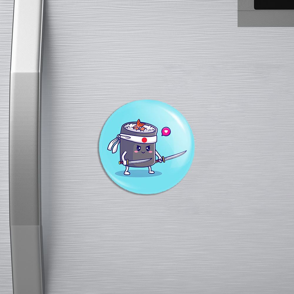 مگنت سوشی خندالو با روکش سلفون مات مخملی ضدخش و قطعه پشتی فلزی تولید شده است که آهنربای اتمی بکار برده شده در محصول، بصورت مخفی تعبیه شده ودیده نمی شود. ضمن اینکه گیرایی بسیار بالایی داشته و به هیچ عنوان از روی یخچال نمی افتد.