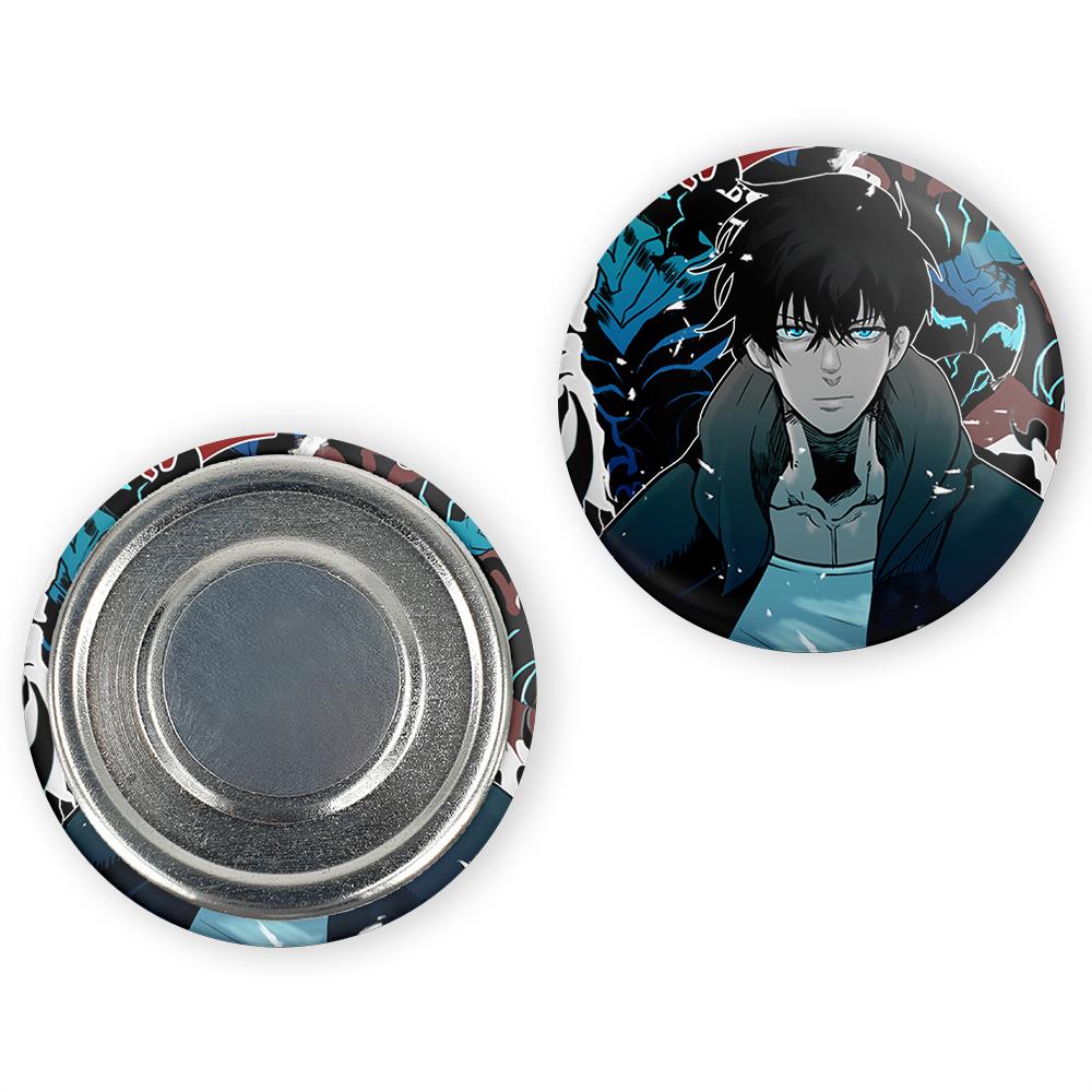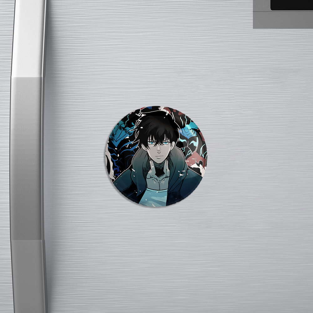 مگنت سونگ جین وو انیمه تک رو خندالو با روکش سلفون مات مخملی ضدخش و قطعه پشتی فلزی تولید شده است که آهنربای اتمی بکار برده شده در محصول، بصورت مخفی تعبیه شده ودیده نمی شود. ضمن اینکه گیرایی بسیار بالایی داشته و به هیچ عنوان از روی یخچال نمی افتد.
