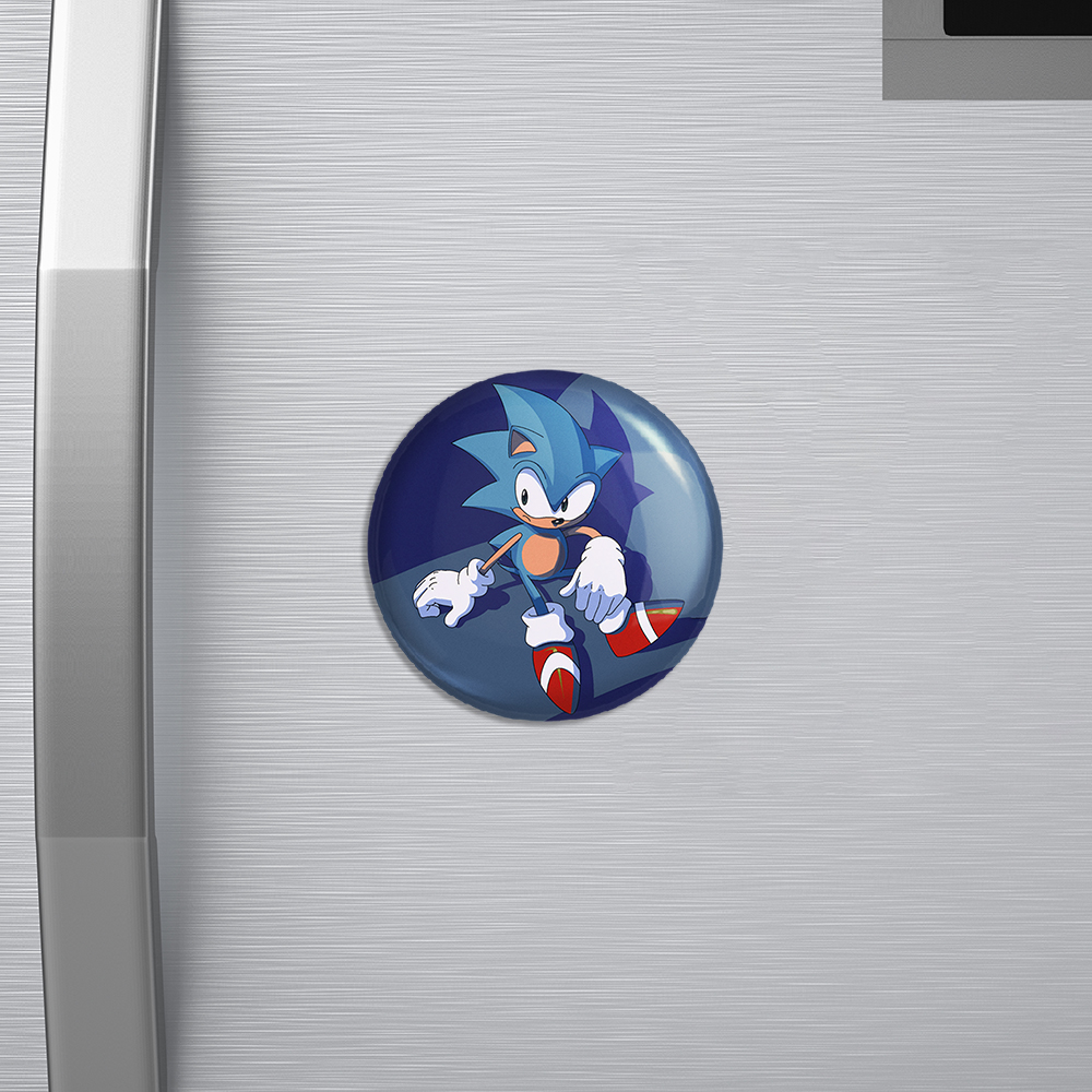 مگنت سونیک (Sonic) خندالو با روکش سلفون مات مخملی ضدخش و قطعه پشتی فلزی تولید شده است که آهنربای اتمی بکار برده شده در محصول، بصورت مخفی تعبیه شده ودیده نمی شود. ضمن اینکه گیرایی بسیار بالایی داشته و به هیچ عنوان از روی یخچال نمی افتد.