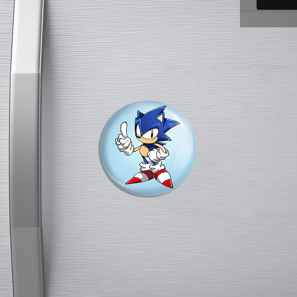 مگنت سونیک (Sonic) خندالو با روکش سلفون مات مخملی ضدخش و قطعه پشتی فلزی تولید شده است که آهنربای اتمی بکار برده شده در محصول، بصورت مخفی تعبیه شده ودیده نمی شود. ضمن اینکه گیرایی بسیار بالایی داشته و به هیچ عنوان از روی یخچال نمی افتد.
