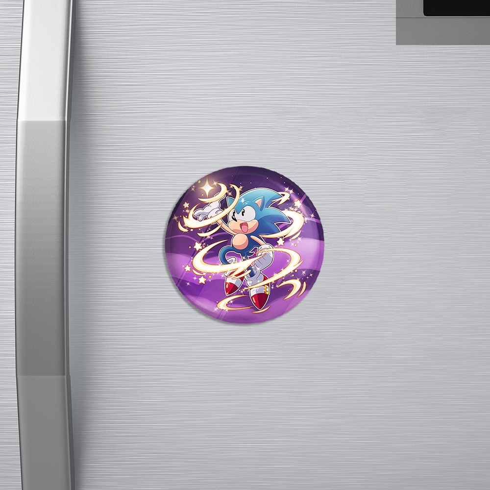 مگنت سونیک (Sonic) خندالو با روکش سلفون مات مخملی ضدخش و قطعه پشتی فلزی تولید شده است که آهنربای اتمی بکار برده شده در محصول، بصورت مخفی تعبیه شده ودیده نمی شود. ضمن اینکه گیرایی بسیار بالایی داشته و به هیچ عنوان از روی یخچال نمی افتد.