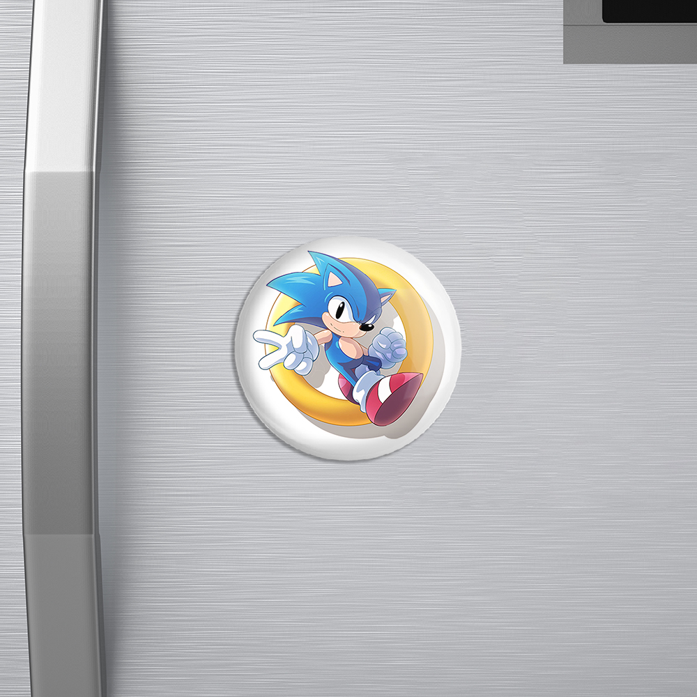 مگنت سونیک (Sonic) خندالو با روکش سلفون مات مخملی ضدخش و قطعه پشتی فلزی تولید شده است که آهنربای اتمی بکار برده شده در محصول، بصورت مخفی تعبیه شده ودیده نمی شود. ضمن اینکه گیرایی بسیار بالایی داشته و به هیچ عنوان از روی یخچال نمی افتد.