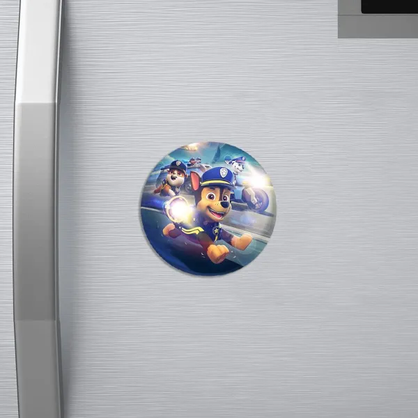 مگنت سگ های نگهبان Paw Patrol خندالو با روکش سلفون مات مخملی ضدخش و قطعه پشتی فلزی تولید شده است که آهنربای اتمی بکار برده شده در محصول، بصورت مخفی تعبیه شده ودیده نمی شود. ضمن اینکه گیرایی بسیار بالایی داشته و به هیچ عنوان از روی یخچال نمی افتد.