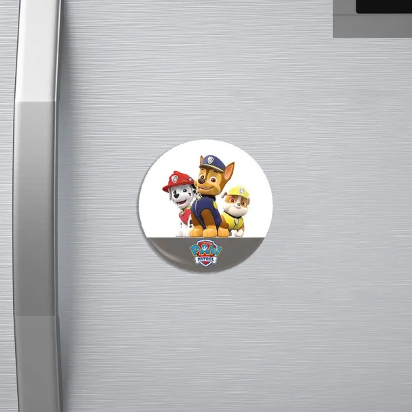مگنت سگ های نگهبان Paw Patrol خندالو با روکش سلفون مات مخملی ضدخش و قطعه پشتی فلزی تولید شده است که آهنربای اتمی بکار برده شده در محصول، بصورت مخفی تعبیه شده ودیده نمی شود. ضمن اینکه گیرایی بسیار بالایی داشته و به هیچ عنوان از روی یخچال نمی افتد.