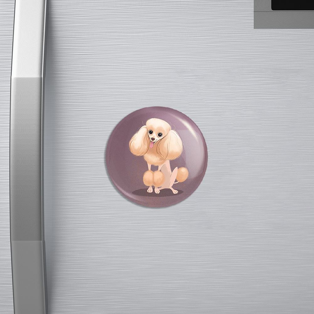 مگنت سگ خندالو با روکش سلفون مات مخملی ضدخش و قطعه پشتی فلزی تولید شده است که آهنربای اتمی بکار برده شده در محصول، بصورت مخفی تعبیه شده ودیده نمی شود. ضمن اینکه گیرایی بسیار بالایی داشته و به هیچ عنوان از روی یخچال نمی افتد.