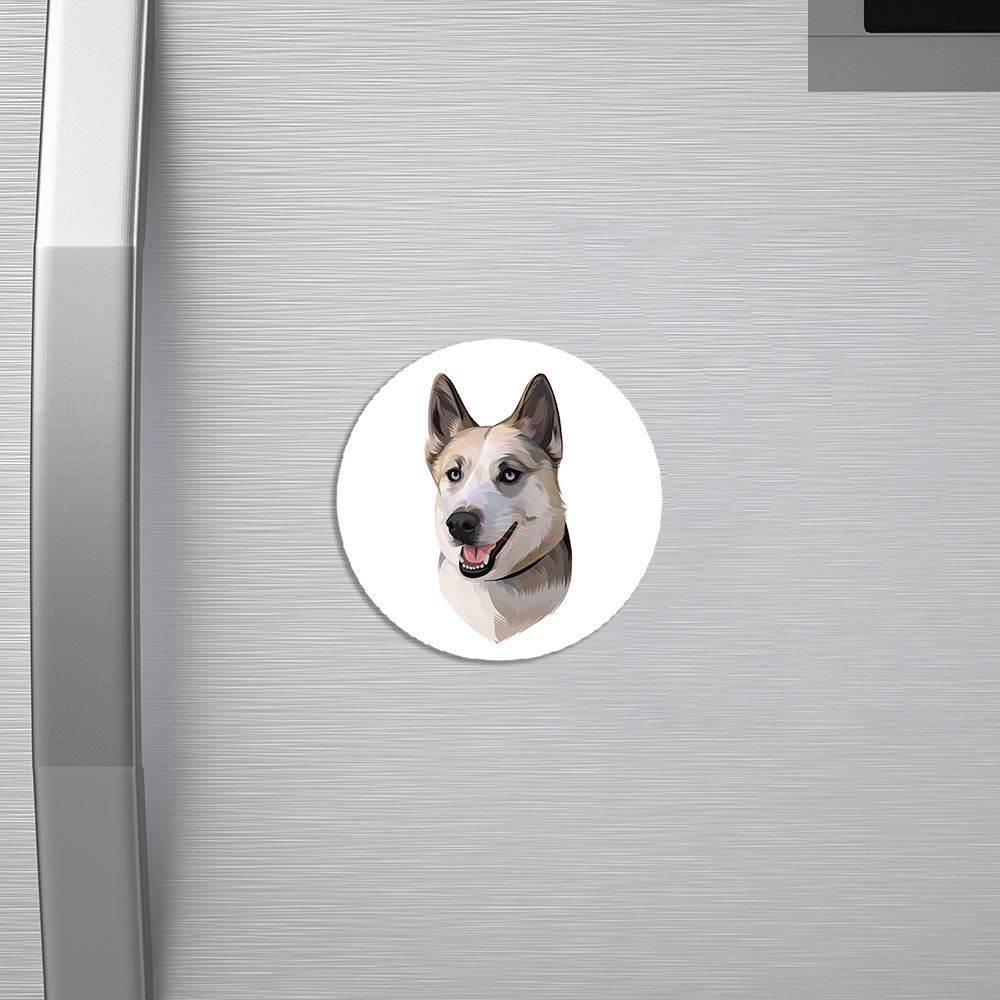 مگنت سگ خندالو با روکش سلفون مات مخملی ضدخش و قطعه پشتی فلزی تولید شده است که آهنربای اتمی بکار برده شده در محصول، بصورت مخفی تعبیه شده ودیده نمی شود. ضمن اینکه گیرایی بسیار بالایی داشته و به هیچ عنوان از روی یخچال نمی افتد.