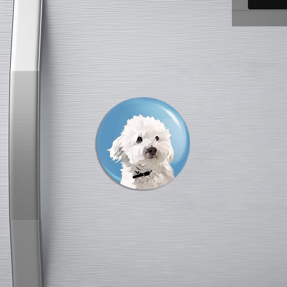 مگنت سگ خندالو با روکش سلفون مات مخملی ضدخش و قطعه پشتی فلزی تولید شده است که آهنربای اتمی بکار برده شده در محصول، بصورت مخفی تعبیه شده ودیده نمی شود. ضمن اینکه گیرایی بسیار بالایی داشته و به هیچ عنوان از روی یخچال نمی افتد.