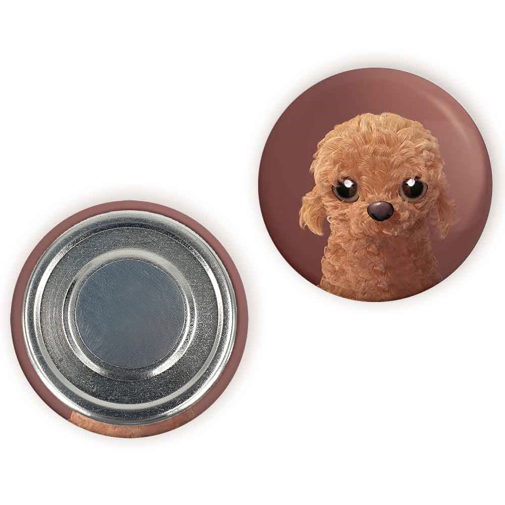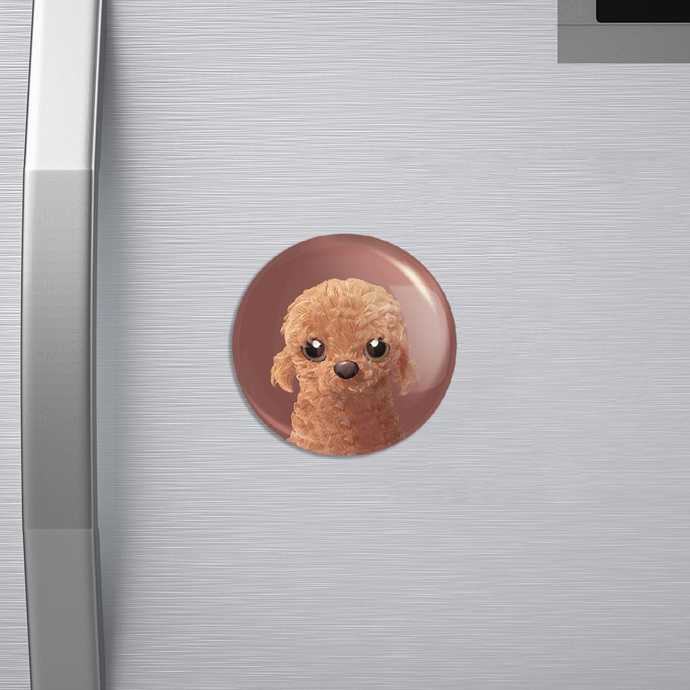 مگنت سگ خندالو با روکش سلفون مات مخملی ضدخش و قطعه پشتی فلزی تولید شده است که آهنربای اتمی بکار برده شده در محصول، بصورت مخفی تعبیه شده ودیده نمی شود. ضمن اینکه گیرایی بسیار بالایی داشته و به هیچ عنوان از روی یخچال نمی افتد.