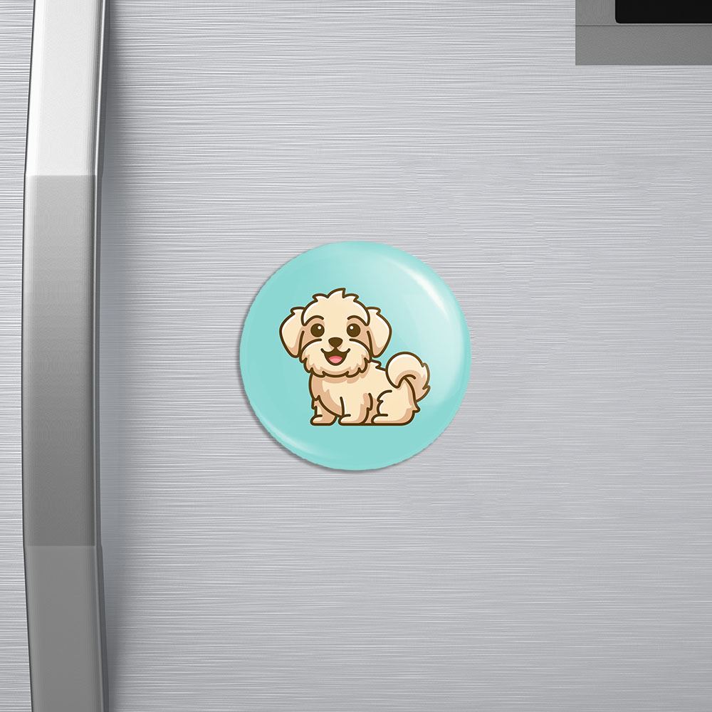 مگنت سگ خندالو با روکش سلفون مات مخملی ضدخش و قطعه پشتی فلزی تولید شده است که آهنربای اتمی بکار برده شده در محصول، بصورت مخفی تعبیه شده ودیده نمی شود. ضمن اینکه گیرایی بسیار بالایی داشته و به هیچ عنوان از روی یخچال نمی افتد.