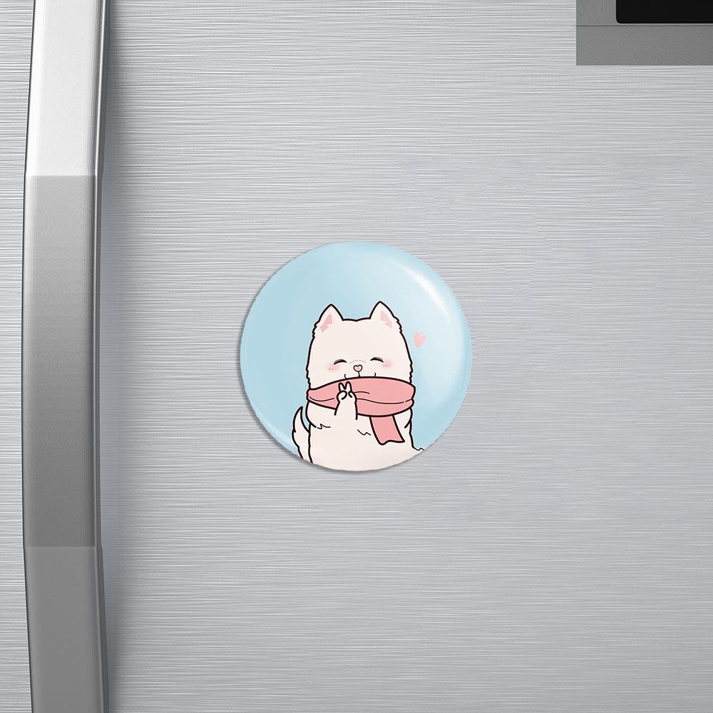مگنت سگ خندالو با روکش سلفون مات مخملی ضدخش و قطعه پشتی فلزی تولید شده است که آهنربای اتمی بکار برده شده در محصول، بصورت مخفی تعبیه شده ودیده نمی شود. ضمن اینکه گیرایی بسیار بالایی داشته و به هیچ عنوان از روی یخچال نمی افتد.
