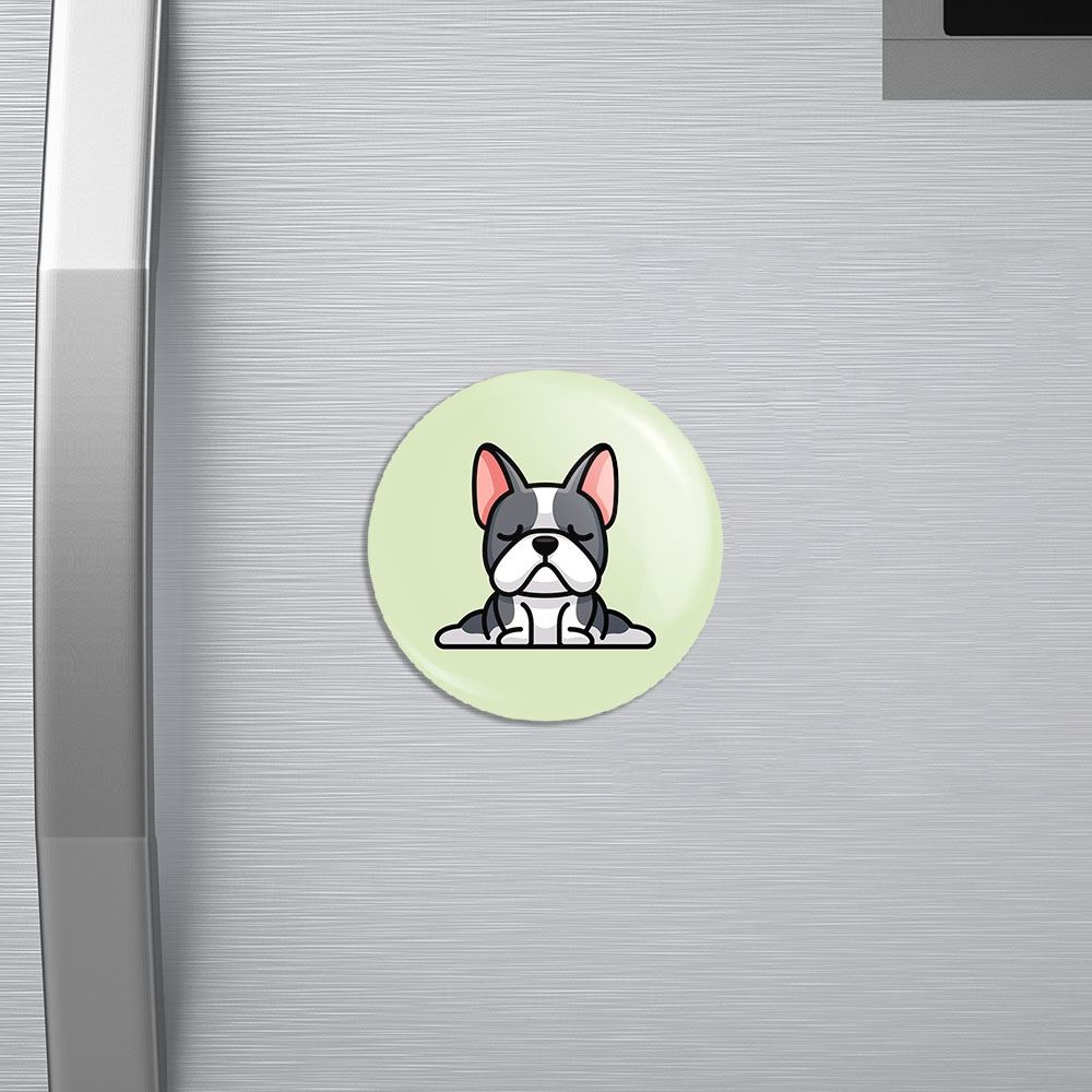 مگنت سگ خندالو با روکش سلفون مات مخملی ضدخش و قطعه پشتی فلزی تولید شده است که آهنربای اتمی بکار برده شده در محصول، بصورت مخفی تعبیه شده ودیده نمی شود. ضمن اینکه گیرایی بسیار بالایی داشته و به هیچ عنوان از روی یخچال نمی افتد.