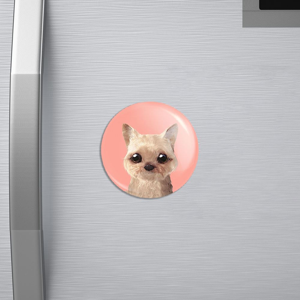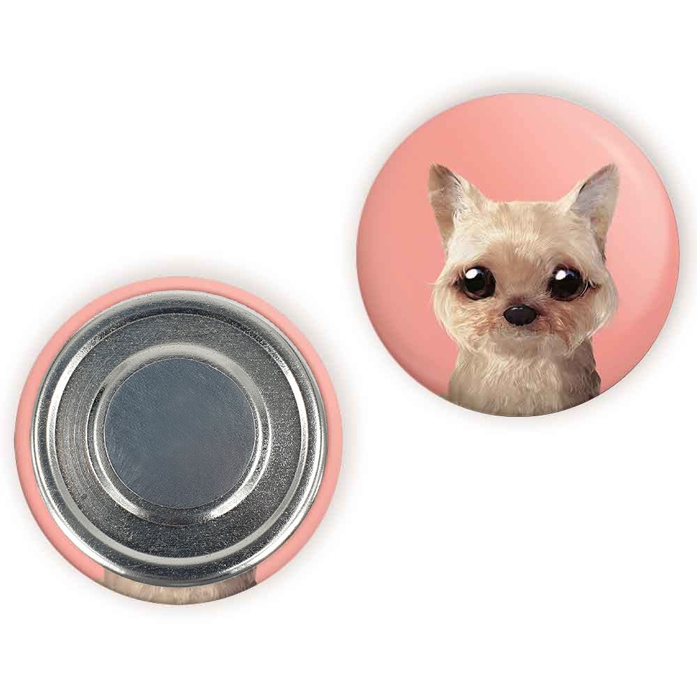 مگنت سگ خندالو با روکش سلفون مات مخملی ضدخش و قطعه پشتی فلزی تولید شده است که آهنربای اتمی بکار برده شده در محصول، بصورت مخفی تعبیه شده ودیده نمی شود. ضمن اینکه گیرایی بسیار بالایی داشته و به هیچ عنوان از روی یخچال نمی افتد.