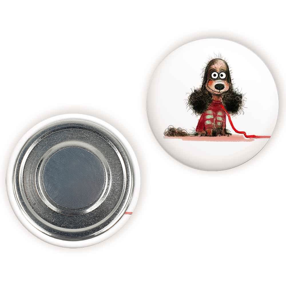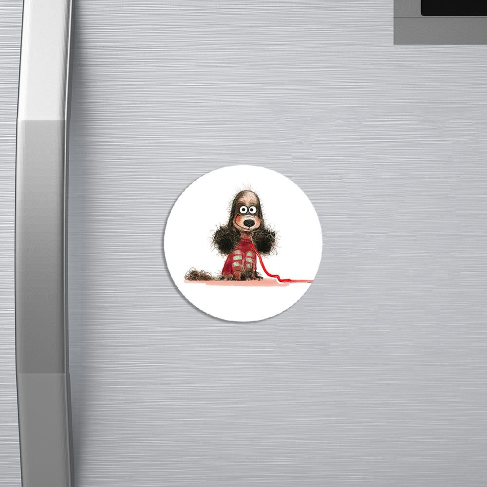 مگنت سگ خندالو با روکش سلفون مات مخملی ضدخش و قطعه پشتی فلزی تولید شده است که آهنربای اتمی بکار برده شده در محصول، بصورت مخفی تعبیه شده ودیده نمی شود. ضمن اینکه گیرایی بسیار بالایی داشته و به هیچ عنوان از روی یخچال نمی افتد.