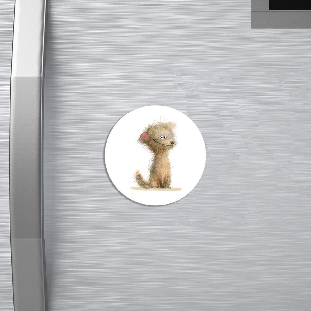 مگنت سگ خندالو با روکش سلفون مات مخملی ضدخش و قطعه پشتی فلزی تولید شده است که آهنربای اتمی بکار برده شده در محصول، بصورت مخفی تعبیه شده ودیده نمی شود. ضمن اینکه گیرایی بسیار بالایی داشته و به هیچ عنوان از روی یخچال نمی افتد.