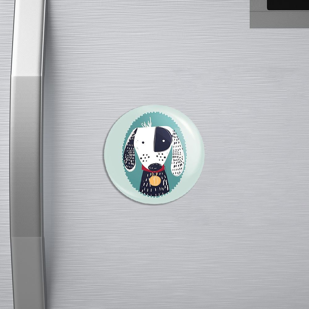 مگنت سگ خندالو با روکش سلفون مات مخملی ضدخش و قطعه پشتی فلزی تولید شده است که آهنربای اتمی بکار برده شده در محصول، بصورت مخفی تعبیه شده ودیده نمی شود. ضمن اینکه گیرایی بسیار بالایی داشته و به هیچ عنوان از روی یخچال نمی افتد.