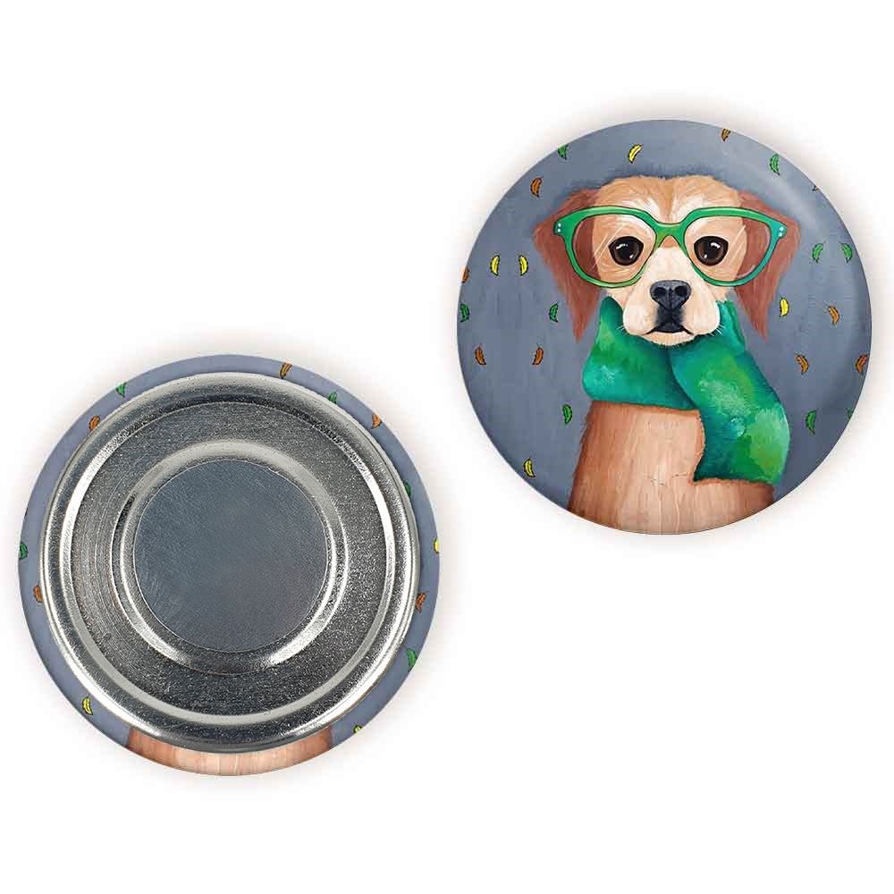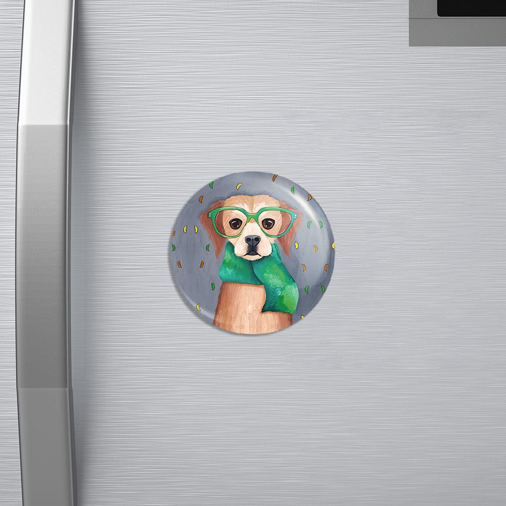 مگنت سگ خندالو با روکش سلفون مات مخملی ضدخش و قطعه پشتی فلزی تولید شده است که آهنربای اتمی بکار برده شده در محصول، بصورت مخفی تعبیه شده ودیده نمی شود. ضمن اینکه گیرایی بسیار بالایی داشته و به هیچ عنوان از روی یخچال نمی افتد.