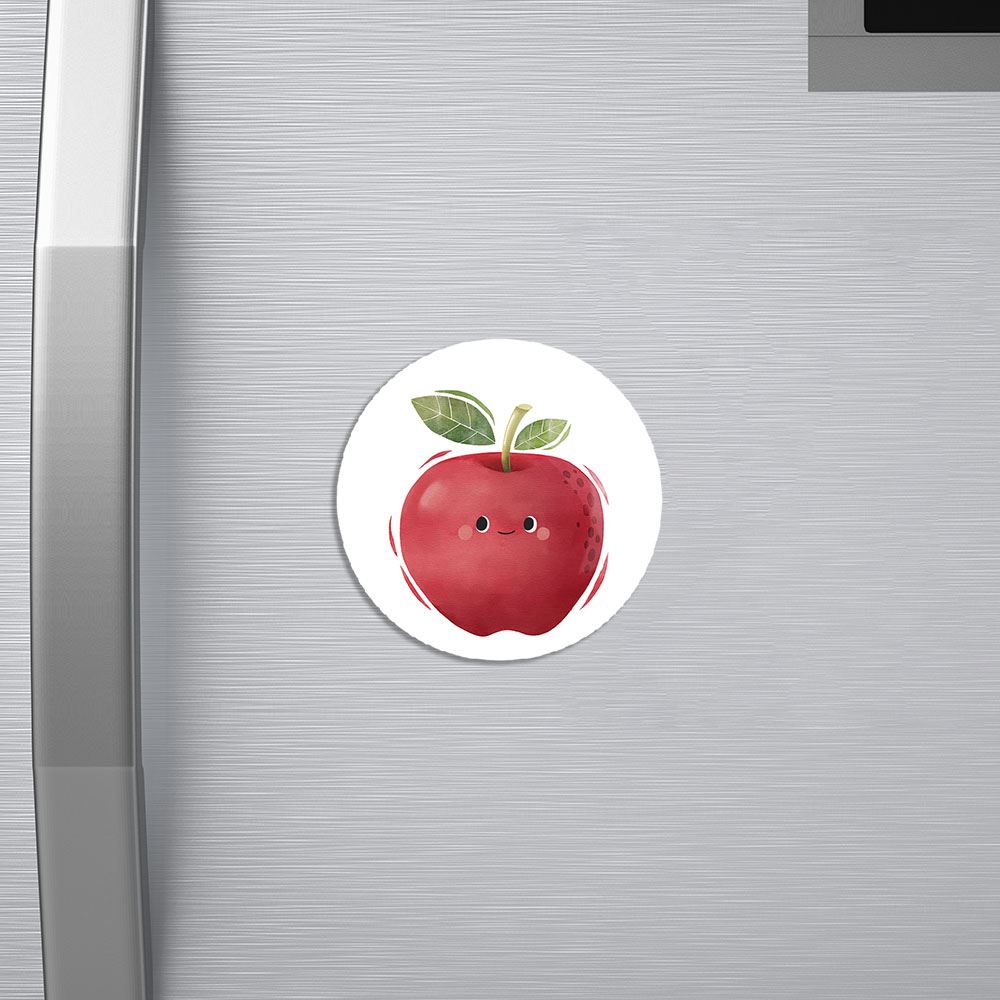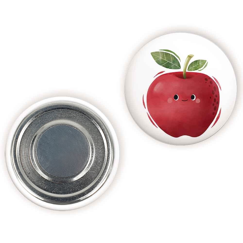 مگنت سیب خندالو با روکش سلفون مات مخملی ضدخش و قطعه پشتی فلزی تولید شده است که آهنربای اتمی بکار برده شده در محصول، بصورت مخفی تعبیه شده ودیده نمی شود. ضمن اینکه گیرایی بسیار بالایی داشته و به هیچ عنوان از روی یخچال نمی افتد.