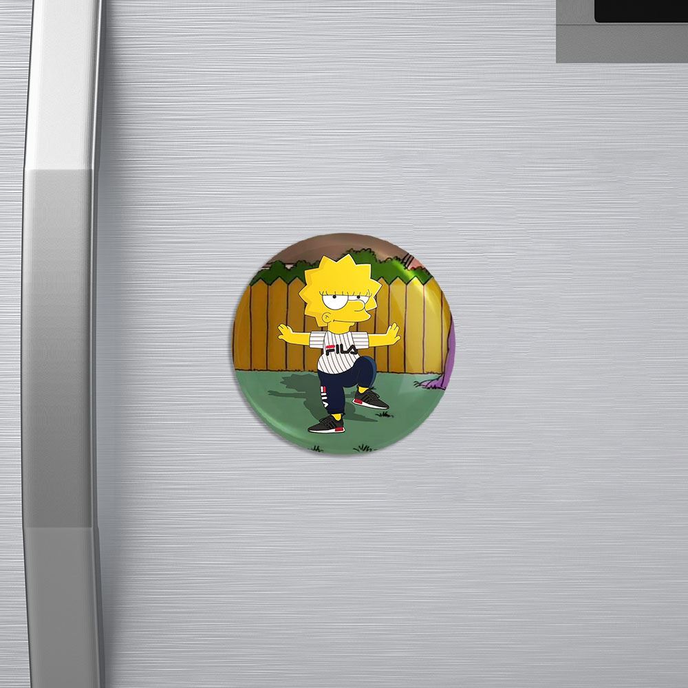مگنت سیمپسون ها The Simpsons خندالو با روکش سلفون مات مخملی ضدخش و قطعه پشتی فلزی تولید شده است که آهنربای اتمی بکار برده شده در محصول، بصورت مخفی تعبیه شده ودیده نمی شود. ضمن اینکه گیرایی بسیار بالایی داشته و به هیچ عنوان از روی یخچال نمی افتد.