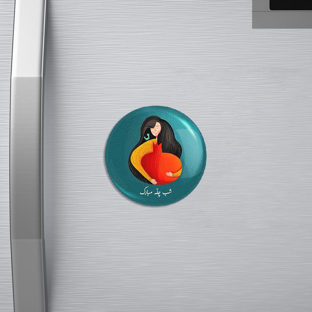 مگنت شب یلدا خندالو با روکش سلفون مات مخملی ضدخش و قطعه پشتی فلزی تولید شده است که آهنربای اتمی بکار برده شده در محصول، بصورت مخفی تعبیه شده ودیده نمی شود. ضمن اینکه گیرایی بسیار بالایی داشته و به هیچ عنوان از روی یخچال نمی افتد.