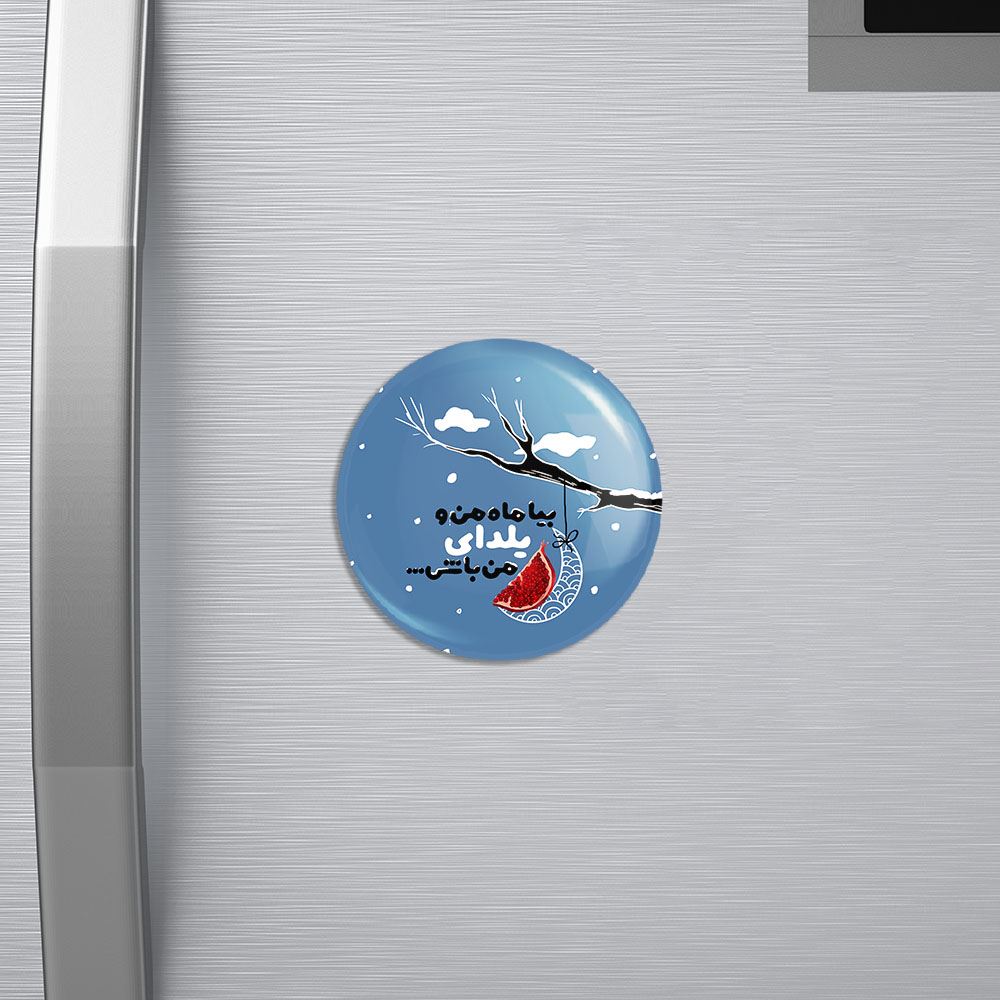 مگنت شب یلدا خندالو با روکش سلفون مات مخملی ضدخش و قطعه پشتی فلزی تولید شده است که آهنربای اتمی بکار برده شده در محصول، بصورت مخفی تعبیه شده ودیده نمی شود. ضمن اینکه گیرایی بسیار بالایی داشته و به هیچ عنوان از روی یخچال نمی افتد.