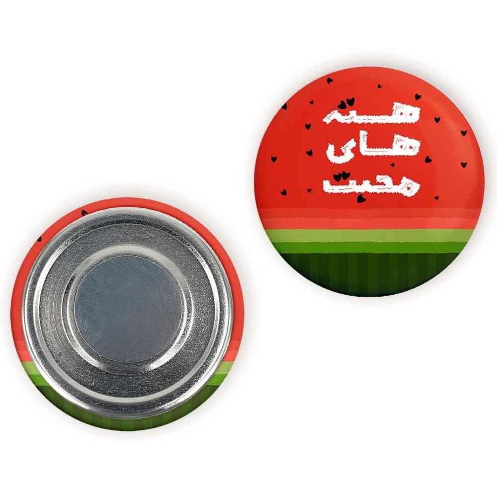 مگنت شب یلدا خندالو با روکش سلفون مات مخملی ضدخش و قطعه پشتی فلزی تولید شده است که آهنربای اتمی بکار برده شده در محصول، بصورت مخفی تعبیه شده ودیده نمی شود. ضمن اینکه گیرایی بسیار بالایی داشته و به هیچ عنوان از روی یخچال نمی افتد.