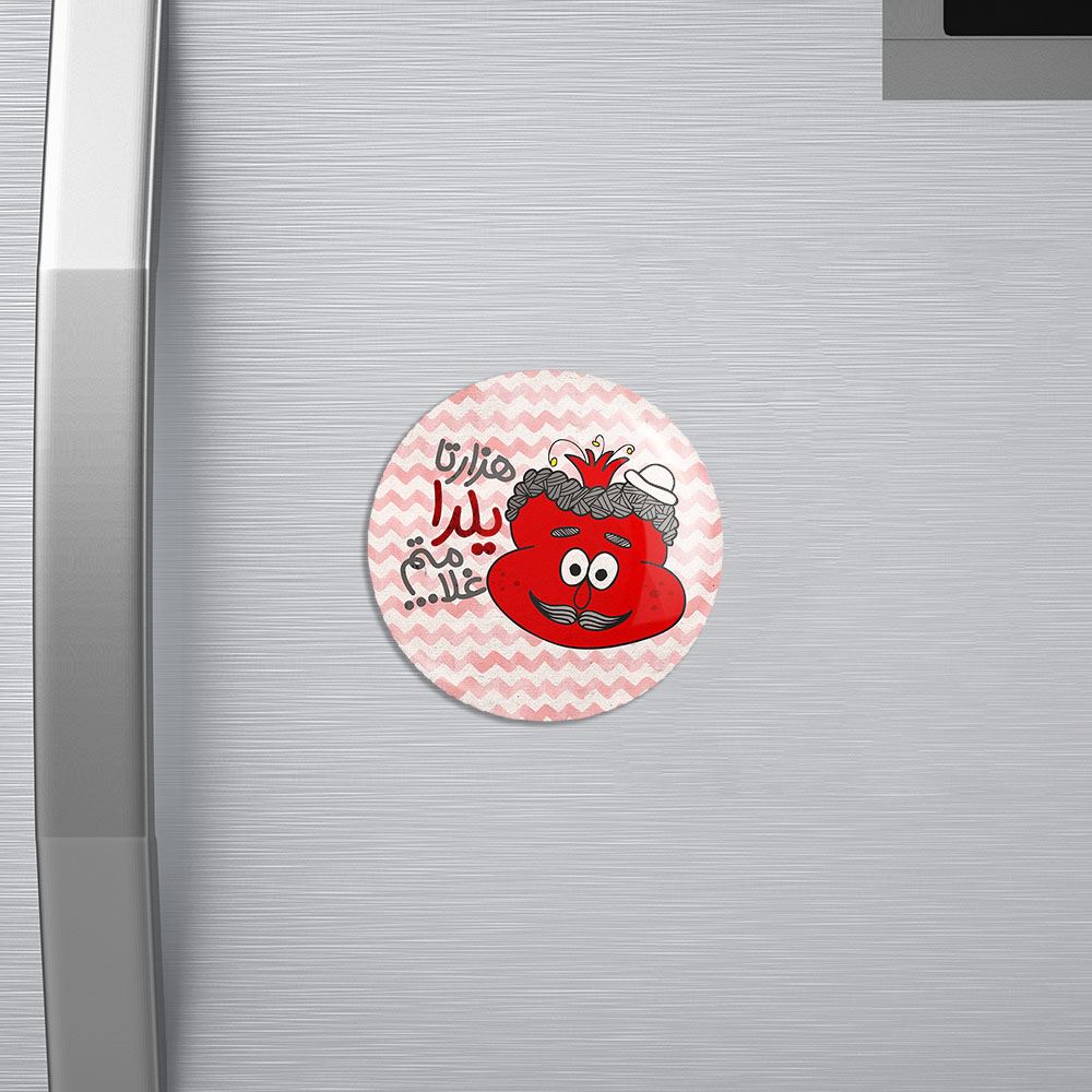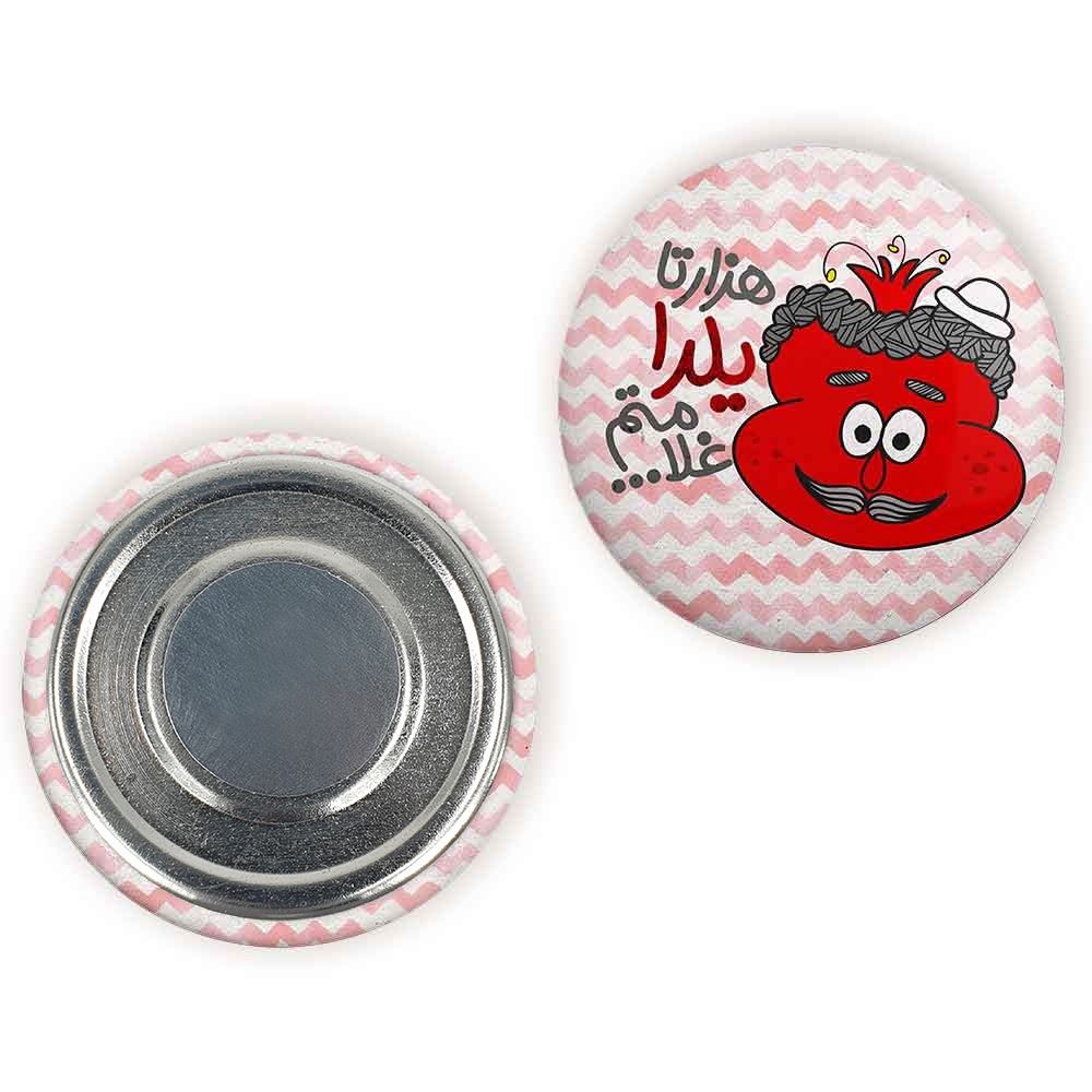 مگنت شب یلدا خندالو با روکش سلفون مات مخملی ضدخش و قطعه پشتی فلزی تولید شده است که آهنربای اتمی بکار برده شده در محصول، بصورت مخفی تعبیه شده ودیده نمی شود. ضمن اینکه گیرایی بسیار بالایی داشته و به هیچ عنوان از روی یخچال نمی افتد.