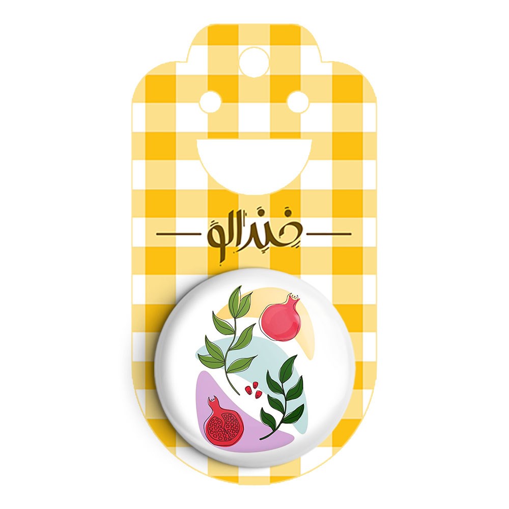 مگنت شب یلدا خندالو با روکش سلفون مات مخملی ضدخش و قطعه پشتی فلزی تولید شده است که آهنربای اتمی بکار برده شده در محصول، بصورت مخفی تعبیه شده ودیده نمی شود. ضمن اینکه گیرایی بسیار بالایی داشته و به هیچ عنوان از روی یخچال نمی افتد.