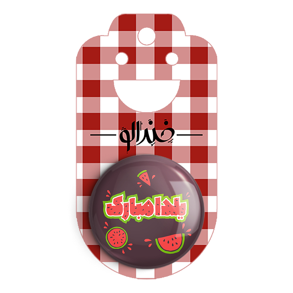 مگنت شب یلدا خندالو با روکش سلفون مات مخملی ضدخش و قطعه پشتی فلزی تولید شده است که آهنربای اتمی بکار برده شده در محصول، بصورت مخفی تعبیه شده ودیده نمی شود. ضمن اینکه گیرایی بسیار بالایی داشته و به هیچ عنوان از روی یخچال نمی افتد.
