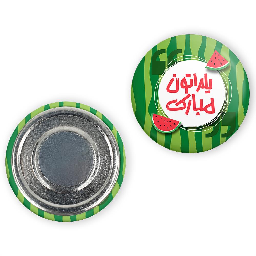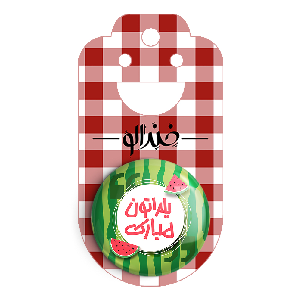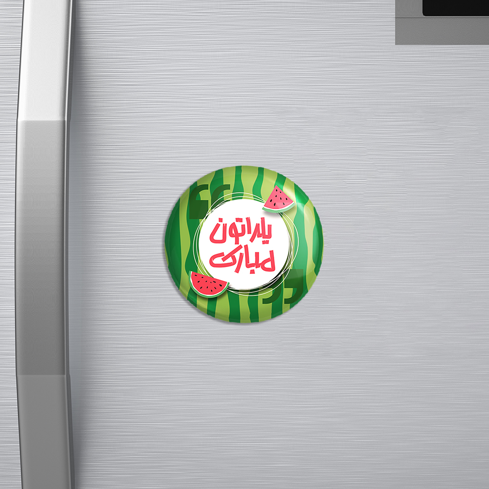 مگنت شب یلدا خندالو با روکش سلفون مات مخملی ضدخش و قطعه پشتی فلزی تولید شده است که آهنربای اتمی بکار برده شده در محصول، بصورت مخفی تعبیه شده ودیده نمی شود. ضمن اینکه گیرایی بسیار بالایی داشته و به هیچ عنوان از روی یخچال نمی افتد.
