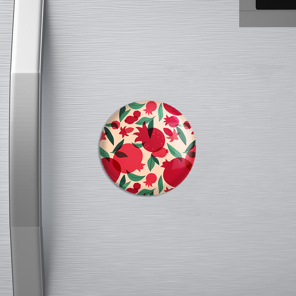 مگنت شب یلدا خندالو با روکش سلفون مات مخملی ضدخش و قطعه پشتی فلزی تولید شده است که آهنربای اتمی بکار برده شده در محصول، بصورت مخفی تعبیه شده ودیده نمی شود. ضمن اینکه گیرایی بسیار بالایی داشته و به هیچ عنوان از روی یخچال نمی افتد.