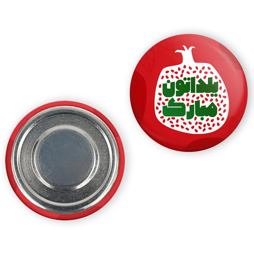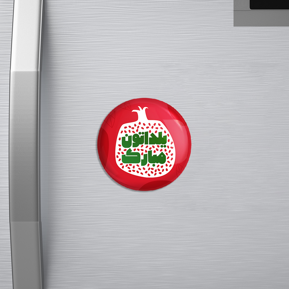 مگنت شب یلدا خندالو با روکش سلفون مات مخملی ضدخش و قطعه پشتی فلزی تولید شده است که آهنربای اتمی بکار برده شده در محصول، بصورت مخفی تعبیه شده ودیده نمی شود. ضمن اینکه گیرایی بسیار بالایی داشته و به هیچ عنوان از روی یخچال نمی افتد.