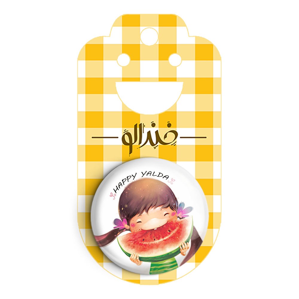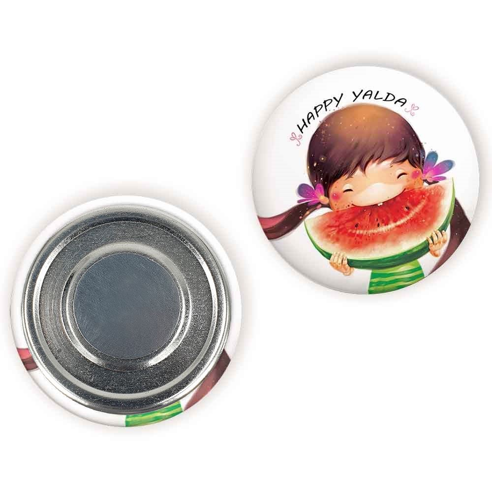 مگنت شب یلدا خندالو با روکش سلفون مات مخملی ضدخش و قطعه پشتی فلزی تولید شده است که آهنربای اتمی بکار برده شده در محصول، بصورت مخفی تعبیه شده ودیده نمی شود. ضمن اینکه گیرایی بسیار بالایی داشته و به هیچ عنوان از روی یخچال نمی افتد.