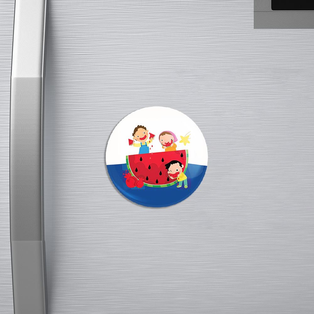 مگنت شب یلدا خندالو با روکش سلفون مات مخملی ضدخش و قطعه پشتی فلزی تولید شده است که آهنربای اتمی بکار برده شده در محصول، بصورت مخفی تعبیه شده ودیده نمی شود. ضمن اینکه گیرایی بسیار بالایی داشته و به هیچ عنوان از روی یخچال نمی افتد.