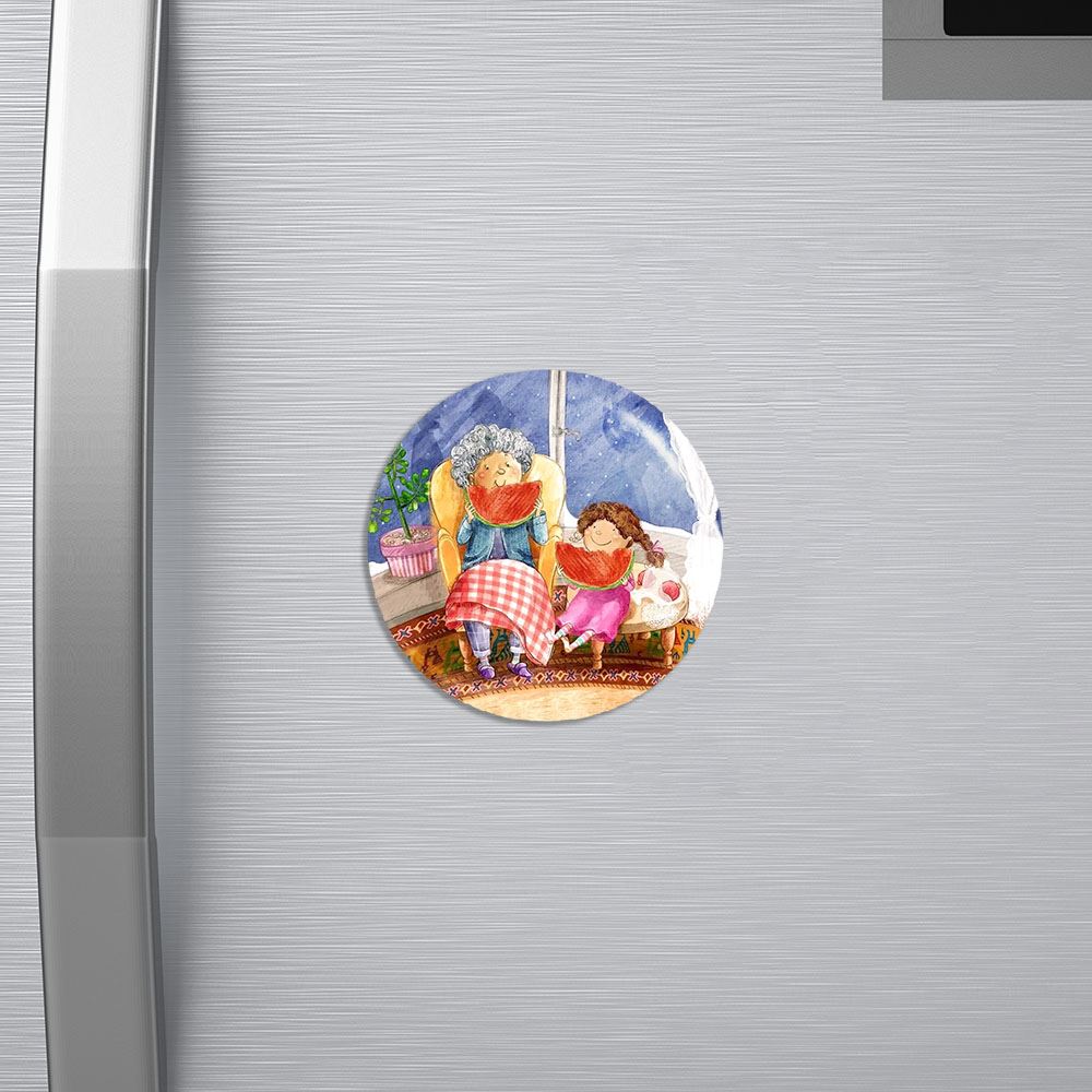 مگنت شب یلدا خندالو با روکش سلفون مات مخملی ضدخش و قطعه پشتی فلزی تولید شده است که آهنربای اتمی بکار برده شده در محصول، بصورت مخفی تعبیه شده ودیده نمی شود. ضمن اینکه گیرایی بسیار بالایی داشته و به هیچ عنوان از روی یخچال نمی افتد.