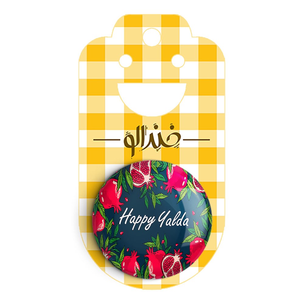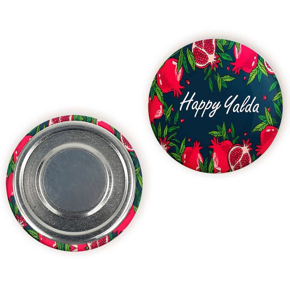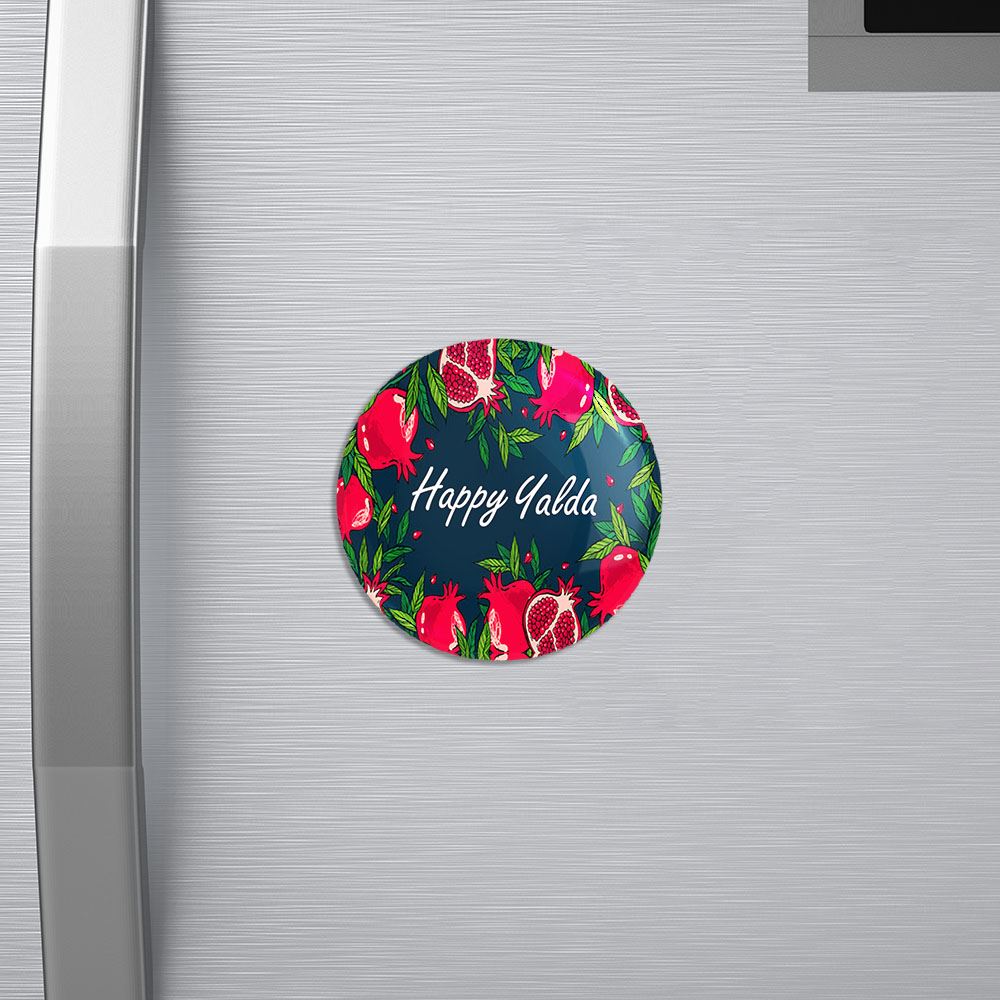 مگنت شب یلدا خندالو با روکش سلفون مات مخملی ضدخش و قطعه پشتی فلزی تولید شده است که آهنربای اتمی بکار برده شده در محصول، بصورت مخفی تعبیه شده ودیده نمی شود. ضمن اینکه گیرایی بسیار بالایی داشته و به هیچ عنوان از روی یخچال نمی افتد.