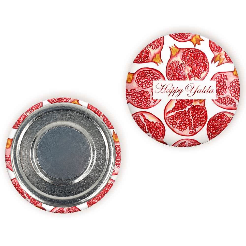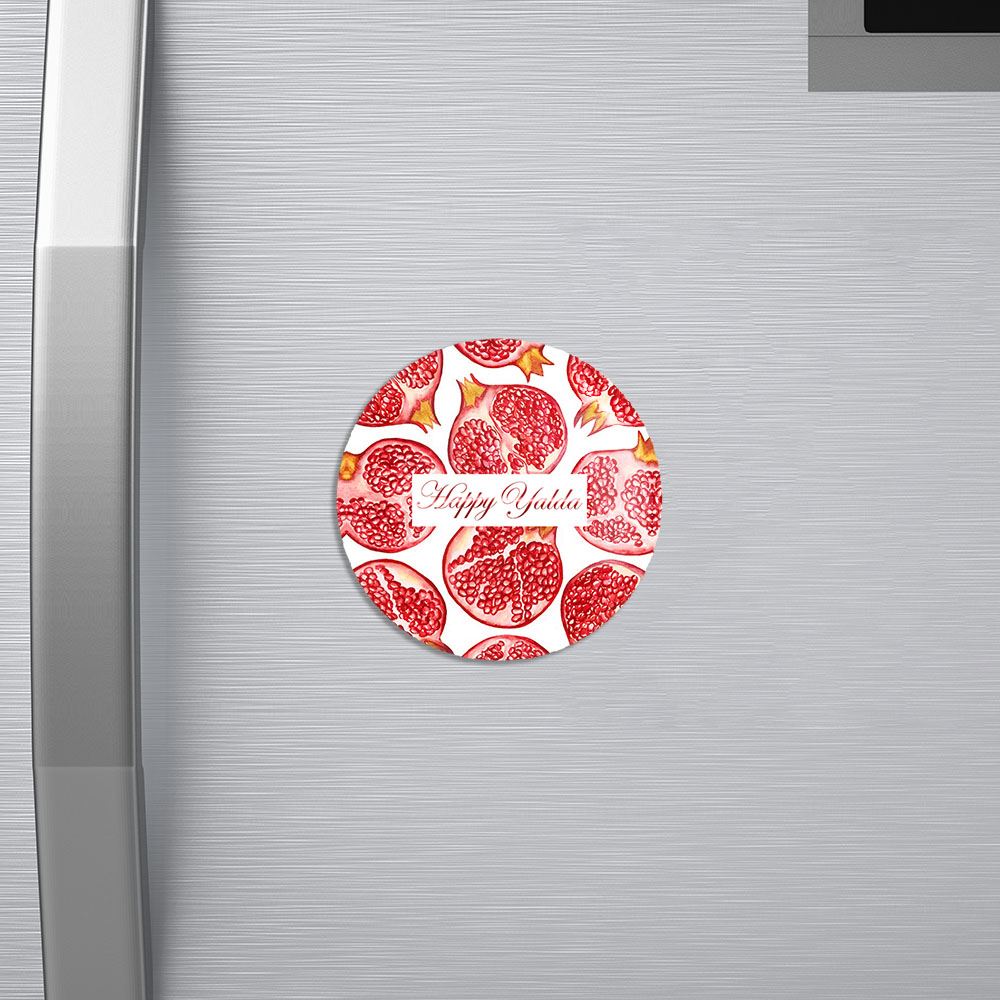 مگنت شب یلدا خندالو با روکش سلفون مات مخملی ضدخش و قطعه پشتی فلزی تولید شده است که آهنربای اتمی بکار برده شده در محصول، بصورت مخفی تعبیه شده ودیده نمی شود. ضمن اینکه گیرایی بسیار بالایی داشته و به هیچ عنوان از روی یخچال نمی افتد.