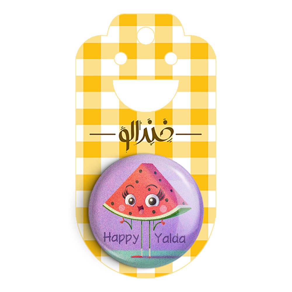 مگنت شب یلدا خندالو با روکش سلفون مات مخملی ضدخش و قطعه پشتی فلزی تولید شده است که آهنربای اتمی بکار برده شده در محصول، بصورت مخفی تعبیه شده ودیده نمی شود. ضمن اینکه گیرایی بسیار بالایی داشته و به هیچ عنوان از روی یخچال نمی افتد.