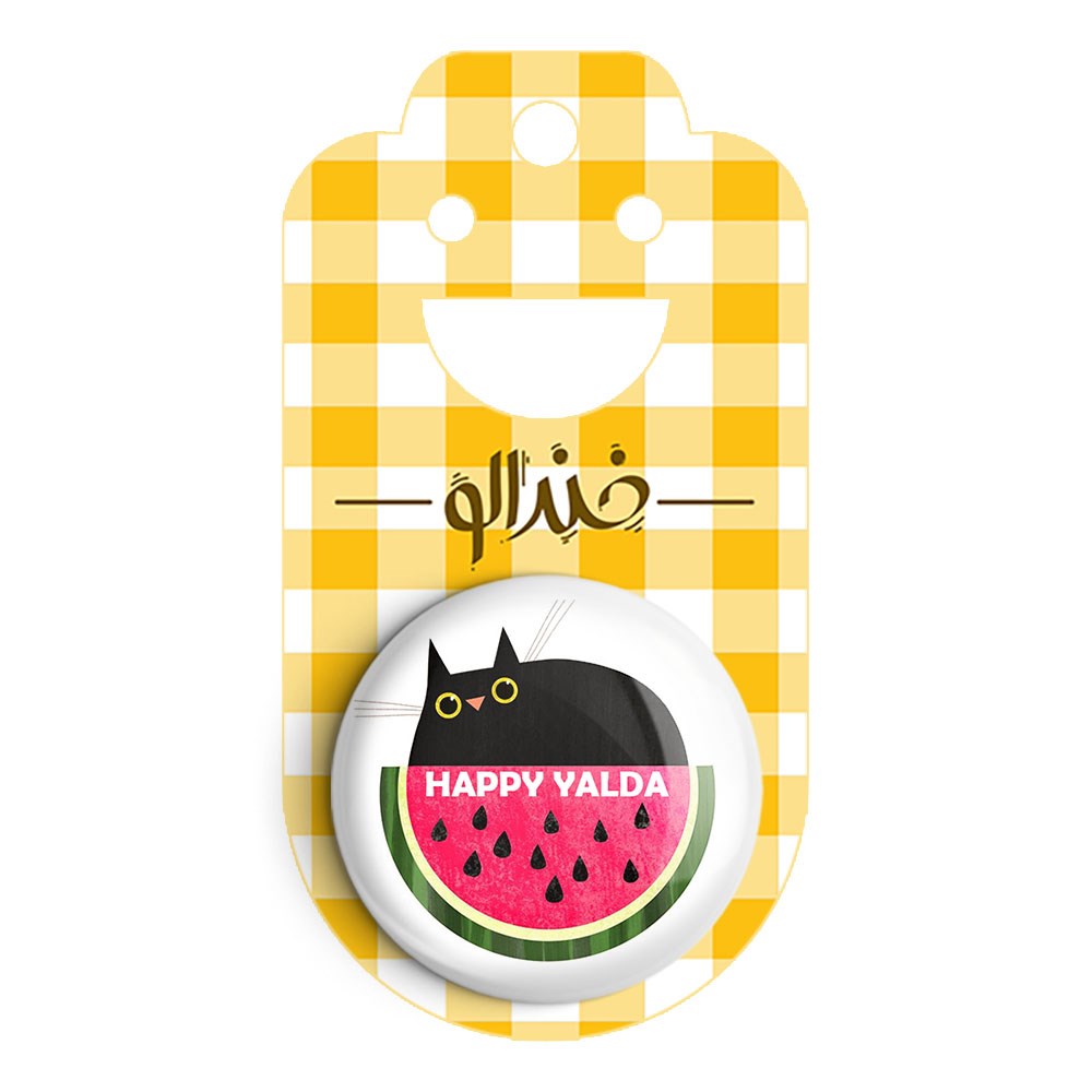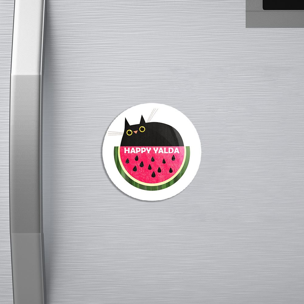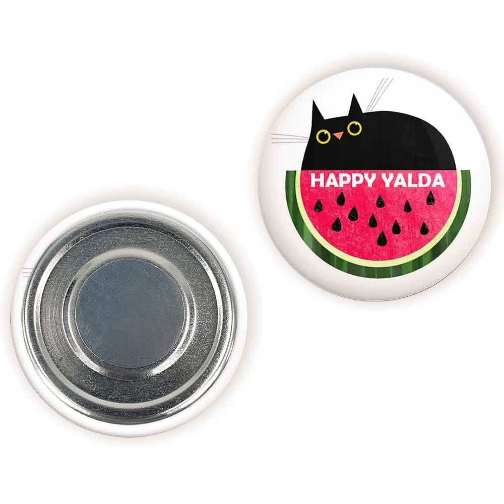 مگنت شب یلدا خندالو با روکش سلفون مات مخملی ضدخش و قطعه پشتی فلزی تولید شده است که آهنربای اتمی بکار برده شده در محصول، بصورت مخفی تعبیه شده ودیده نمی شود. ضمن اینکه گیرایی بسیار بالایی داشته و به هیچ عنوان از روی یخچال نمی افتد.