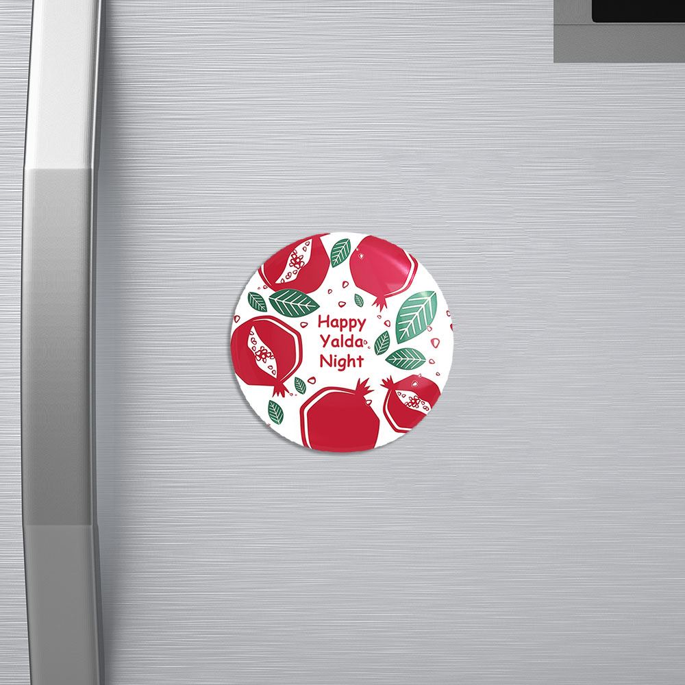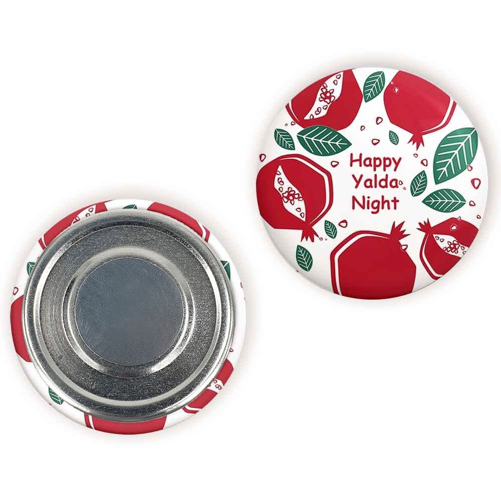 مگنت شب یلدا خندالو با روکش سلفون مات مخملی ضدخش و قطعه پشتی فلزی تولید شده است که آهنربای اتمی بکار برده شده در محصول، بصورت مخفی تعبیه شده ودیده نمی شود. ضمن اینکه گیرایی بسیار بالایی داشته و به هیچ عنوان از روی یخچال نمی افتد.