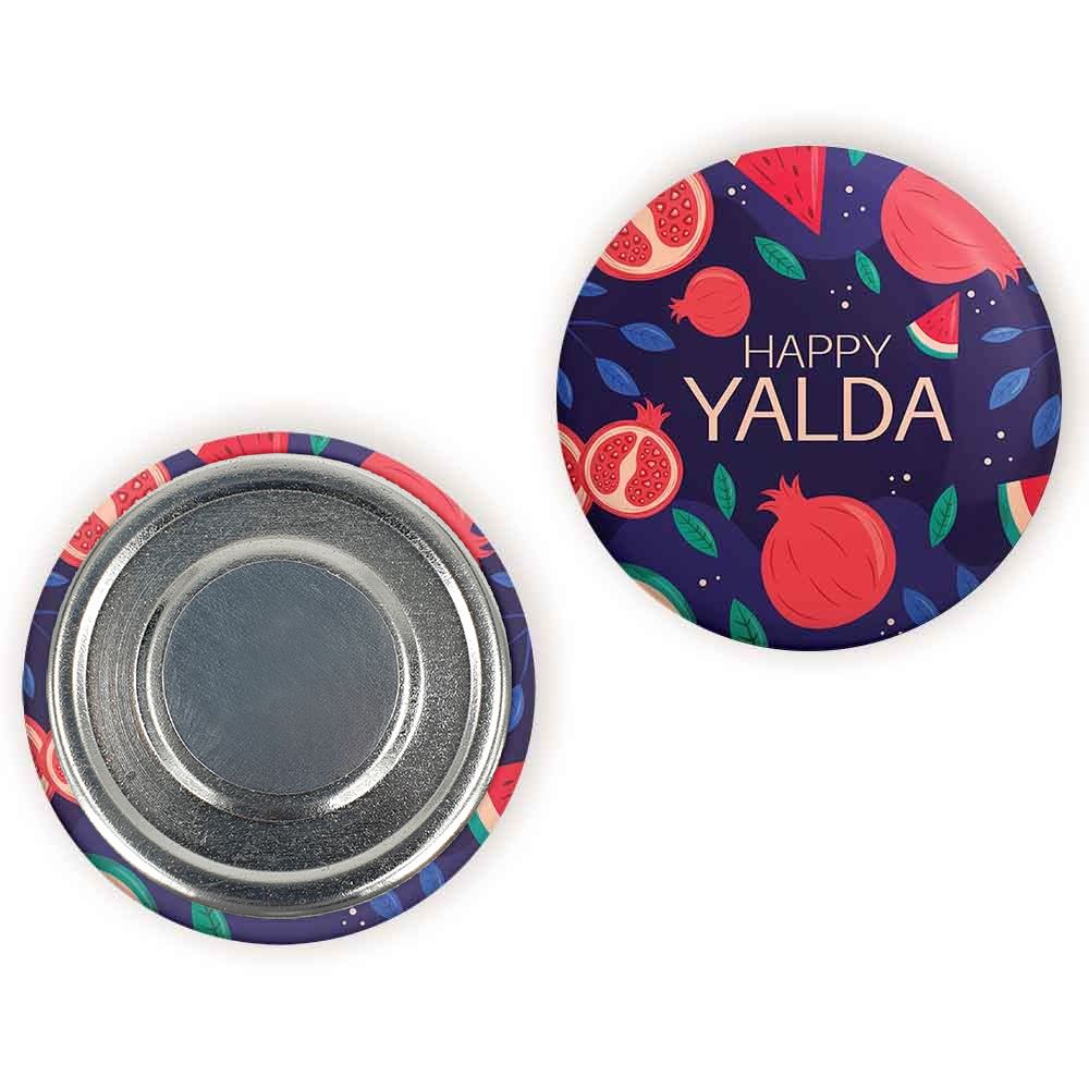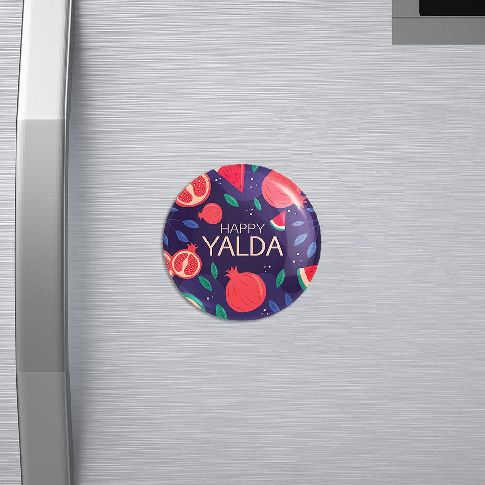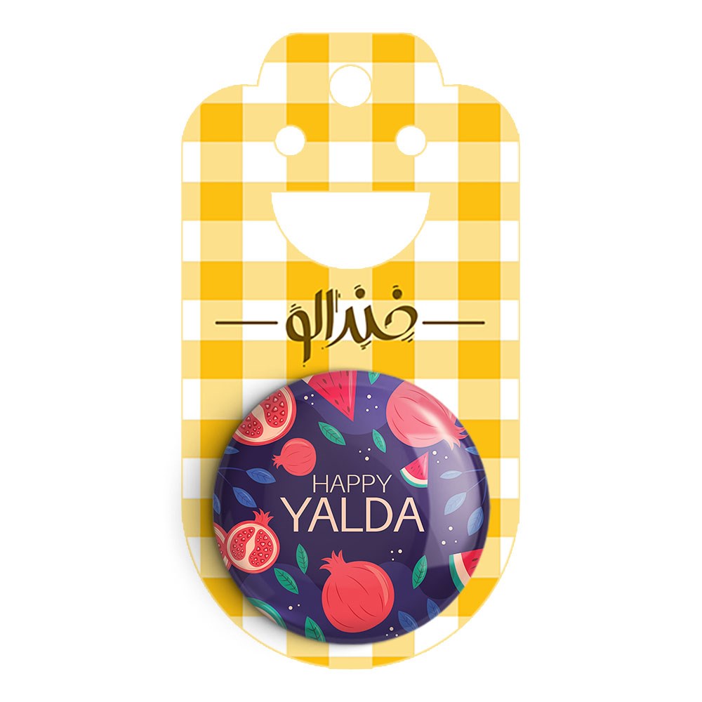 مگنت شب یلدا خندالو با روکش سلفون مات مخملی ضدخش و قطعه پشتی فلزی تولید شده است که آهنربای اتمی بکار برده شده در محصول، بصورت مخفی تعبیه شده ودیده نمی شود. ضمن اینکه گیرایی بسیار بالایی داشته و به هیچ عنوان از روی یخچال نمی افتد.