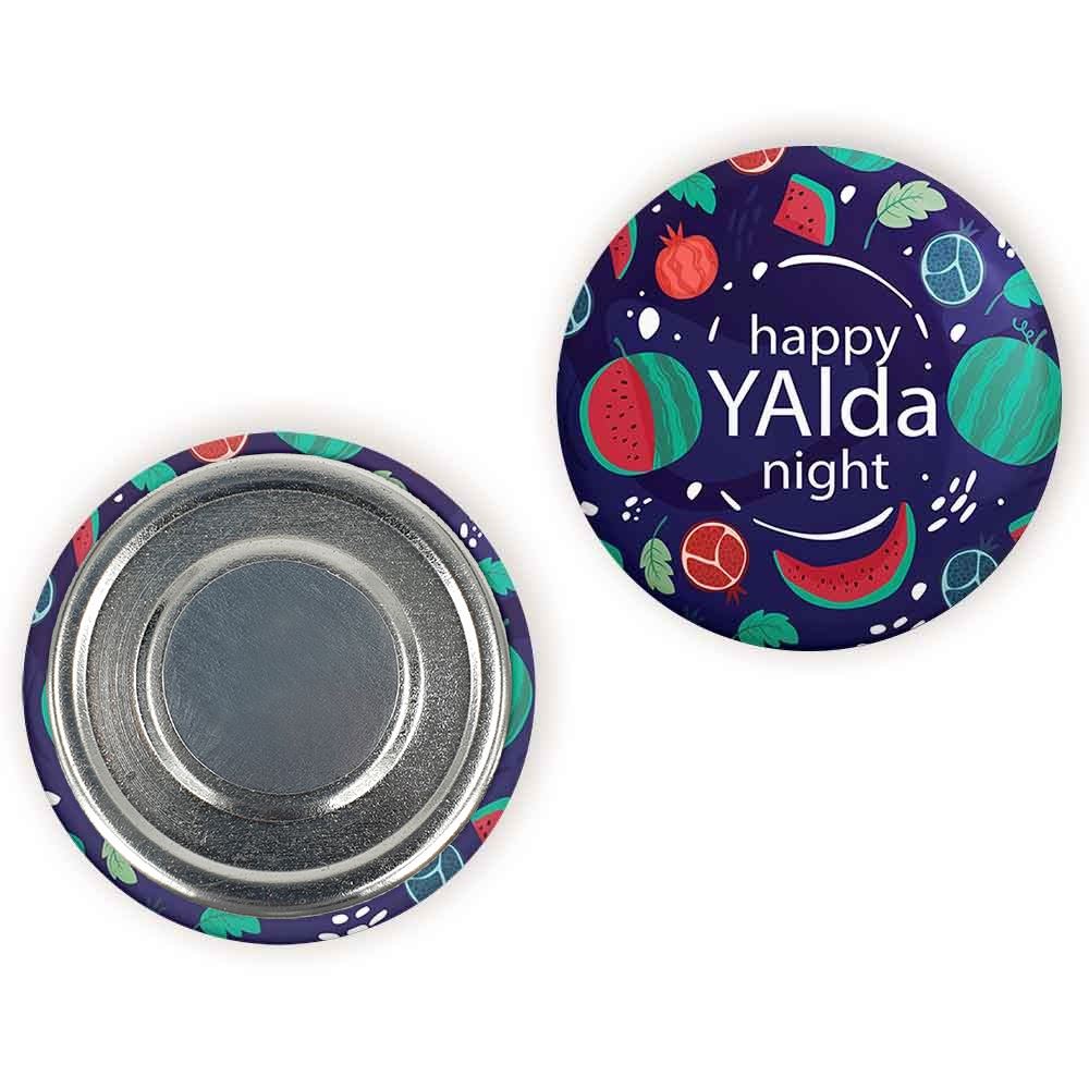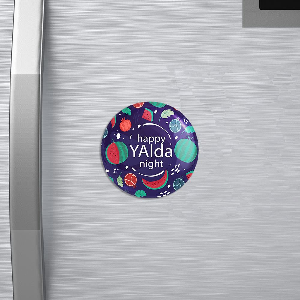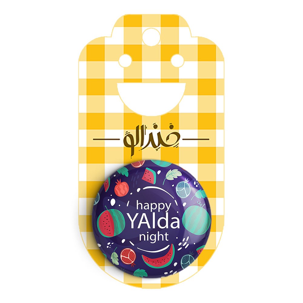 مگنت شب یلدا خندالو با روکش سلفون مات مخملی ضدخش و قطعه پشتی فلزی تولید شده است که آهنربای اتمی بکار برده شده در محصول، بصورت مخفی تعبیه شده ودیده نمی شود. ضمن اینکه گیرایی بسیار بالایی داشته و به هیچ عنوان از روی یخچال نمی افتد.