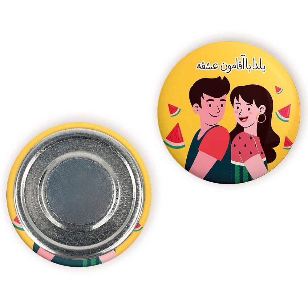 مگنت شب یلدا خندالو با روکش سلفون مات مخملی ضدخش و قطعه پشتی فلزی تولید شده است که آهنربای اتمی بکار برده شده در محصول، بصورت مخفی تعبیه شده ودیده نمی شود. ضمن اینکه گیرایی بسیار بالایی داشته و به هیچ عنوان از روی یخچال نمی افتد.