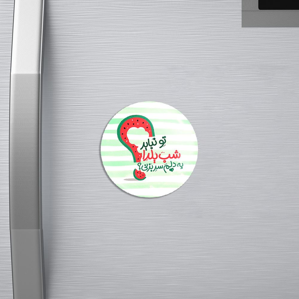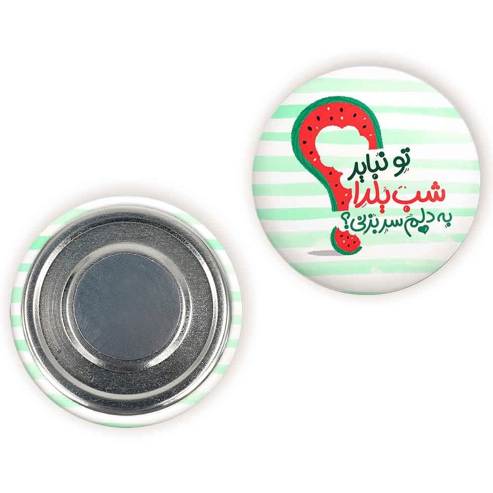 مگنت شب یلدا خندالو با روکش سلفون مات مخملی ضدخش و قطعه پشتی فلزی تولید شده است که آهنربای اتمی بکار برده شده در محصول، بصورت مخفی تعبیه شده ودیده نمی شود. ضمن اینکه گیرایی بسیار بالایی داشته و به هیچ عنوان از روی یخچال نمی افتد.