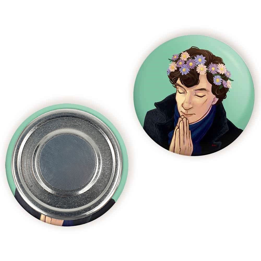 مگنت شرلوک هولمز Sherlock Holmes خندالو با روکش سلفون مات مخملی ضدخش و قطعه پشتی فلزی تولید شده است که آهنربای اتمی بکار برده شده در محصول، بصورت مخفی تعبیه شده ودیده نمی شود. ضمن اینکه گیرایی بسیار بالایی داشته و به هیچ عنوان از روی یخچال نمی افتد.