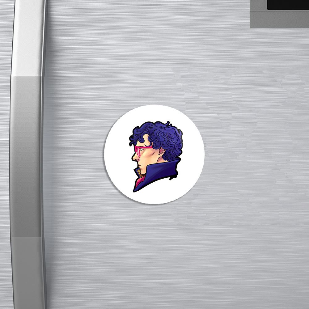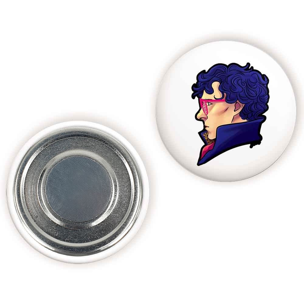 مگنت شرلوک هولمز Sherlock Holmes خندالو با روکش سلفون مات مخملی ضدخش و قطعه پشتی فلزی تولید شده است که آهنربای اتمی بکار برده شده در محصول، بصورت مخفی تعبیه شده ودیده نمی شود. ضمن اینکه گیرایی بسیار بالایی داشته و به هیچ عنوان از روی یخچال نمی افتد.